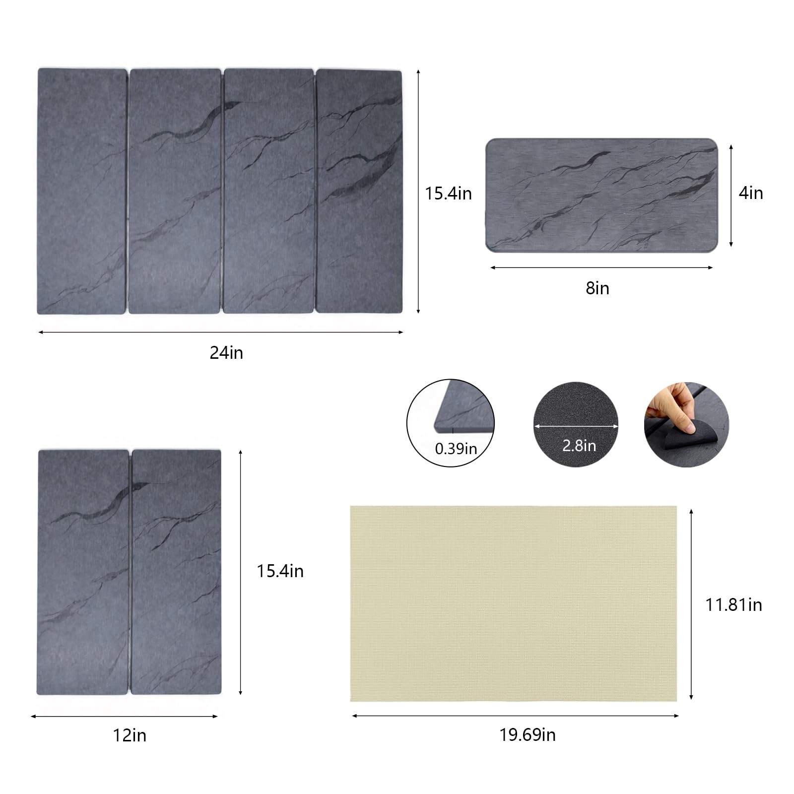 Comes with Sandpaper and Small Drying Pad: The package contains sandpaper, which can be used to polish surfaces, remove stubborn stains, maintain smoothness, and extend the life of the drying pad. The 4x8 inch small stone drying pad can be placed on narrow countertops and can also effectively absorb water for drying.