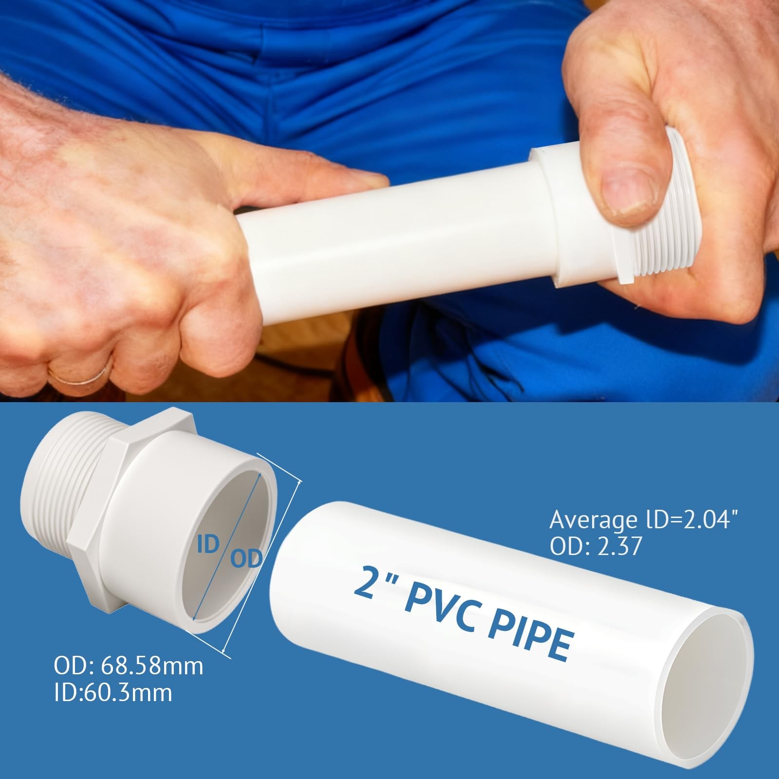 2 Pack 2 Inch Male Thread PVC Fittings White 2 Way PVC 40 Pipe Coupling Adapter