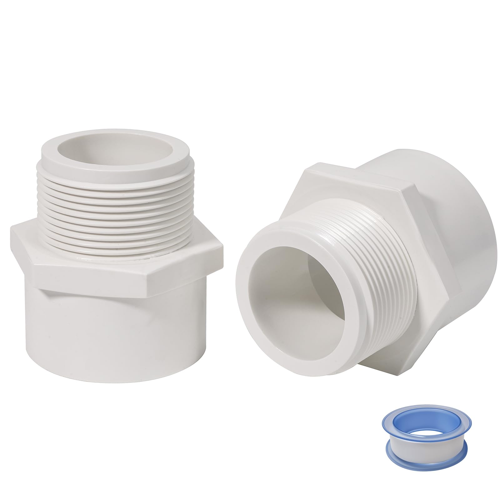 PACKAGE CONTENTS: Set includes 2 white PVC male adapters and 1 roll of 4-meter sealing tape for complete installation needs