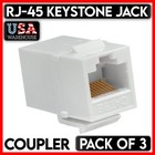 RJ45 Keystone Jack Ethernet RJ-45 Female to Female Inline Coupler - White 3 Pack