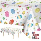 2 Pack Easter Tablecloth - Colorful Easter Eggs Table Cloth, Plastic Disposab...
