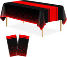 2 Pack Black and Red Tablecloth Party Decorations Plastic Black Tablecloth Print