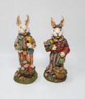 Tall Easter Bunny Figurines Set Country Rabbits Carrots Spring Decor Pair