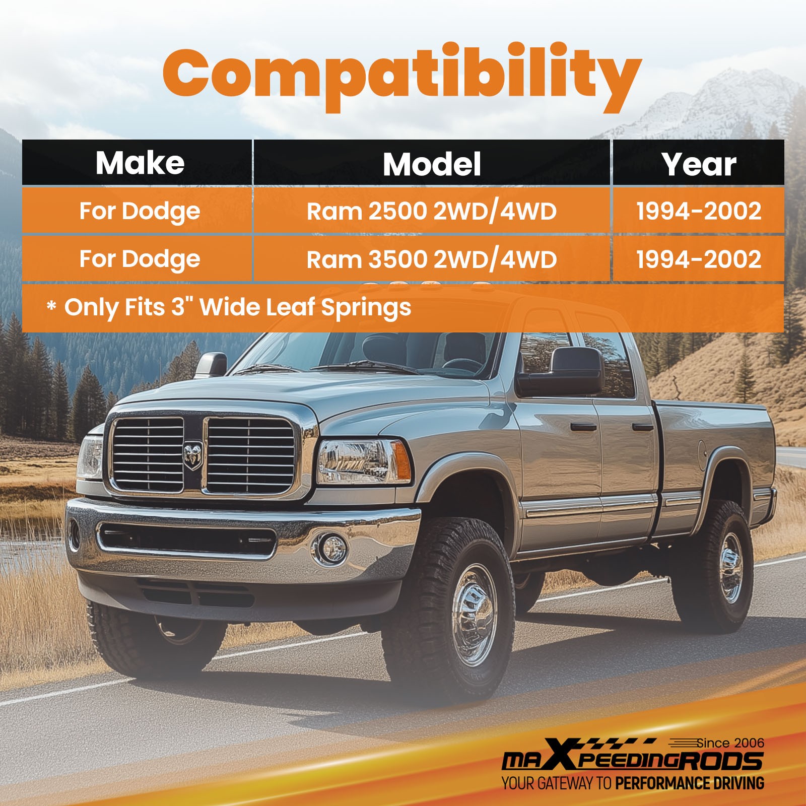- For Dodge Ram 2500 2WD 4WD 1994-2002