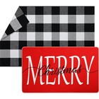 2 Pcs Christmas Door Mat Outdoor Merry Christmas Front Door Mats Buffalo Chec...