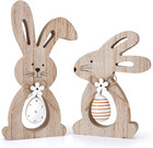 2 Pieces Wood Rabbit Decorations Sign Easter Tiered Tray Decor, Rustic Bunny