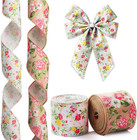 2 Rolls Spring Flower Ribbons Wired for Wreath Bows Wrapping Gifts, Floral Rose