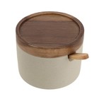 1pc Wooden Salt Pepper Jar Bamboo Spice Container With Spoon Lid - NEW