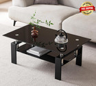 Mesa De Centro Para Sala Cristal Vidrio 2 Niveles Modernas Con Patas Metal NUEVO