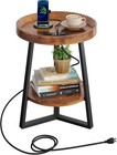 Small Round Side Table with Charging Station, Round Coffee Table, 2 Tier End ...