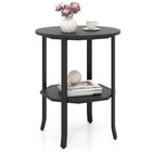 Round Side 2-Tier End Table with Storage Shelf-Black