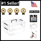 2-Tiers Stack Carry Storage Box With Handle, Transparent Stackable Storage Bi...