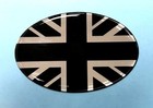 UNION JACK FLAG Oval 72mm x 48mm Sticker/Decal - CHROME/BLACK - GLOSS DOMED GEL