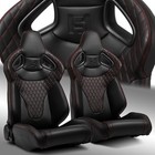 2x Red Stitching PVC Reclinable C-Series Sport Racing Seats W/Slider Left/Right