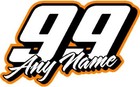 Racing name & number custom vinyl decal sticker 5"x 8" orange any number