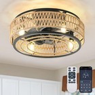 Flush Mount, Boho Rattan Fandelier 20 Inch Boho Caged Ceiling Fans with Lights