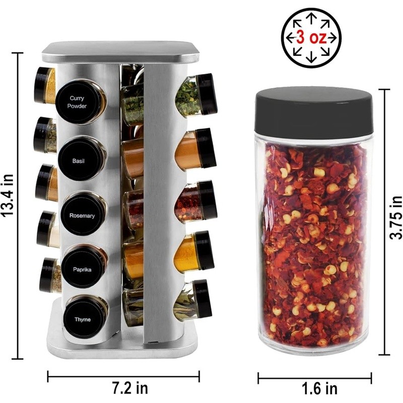 COMPACT DESIGN: Its compact design and rotating base add practicality to style for the ultimate spice storage solution and makes it easy to find the spice you need.