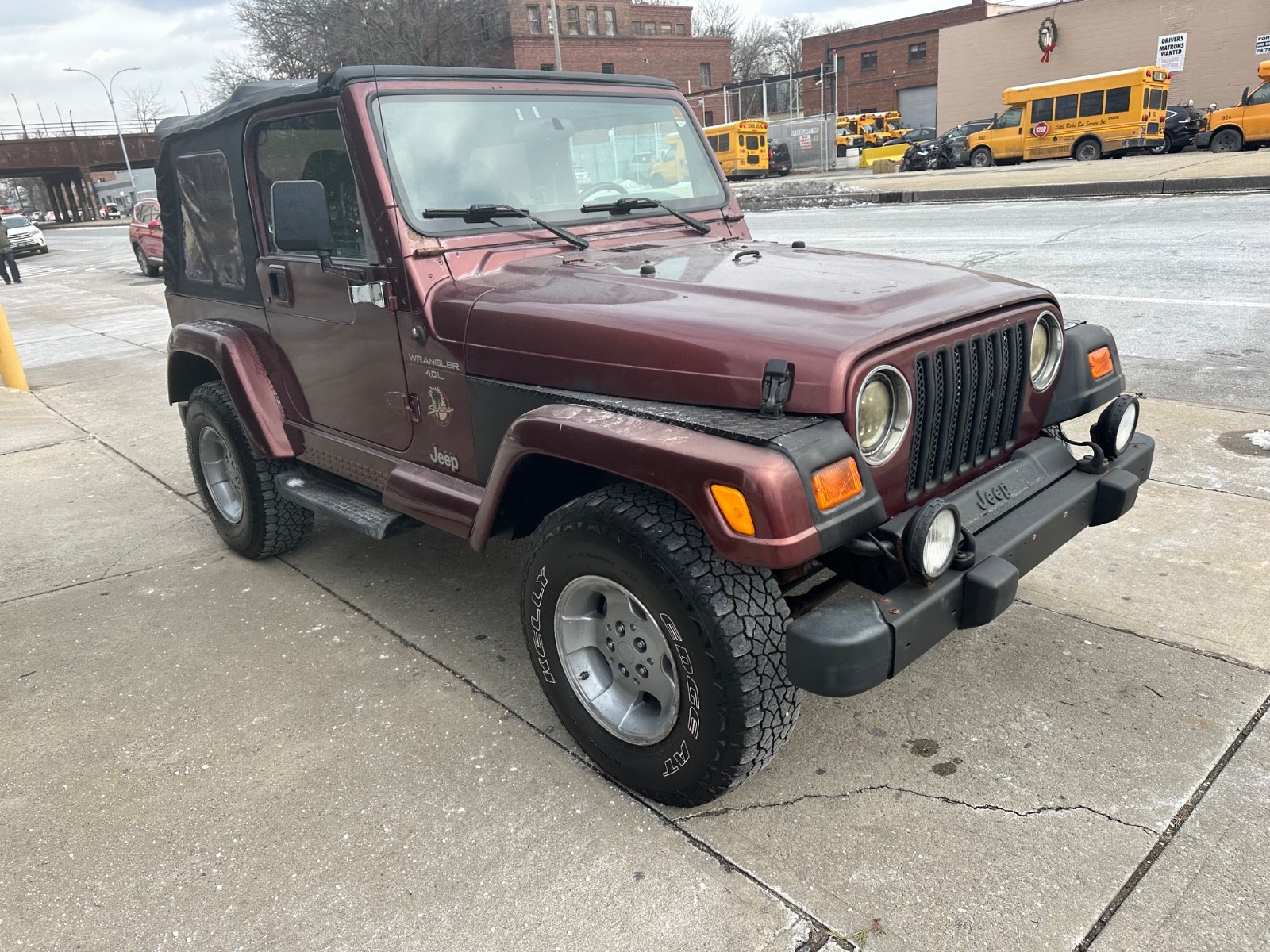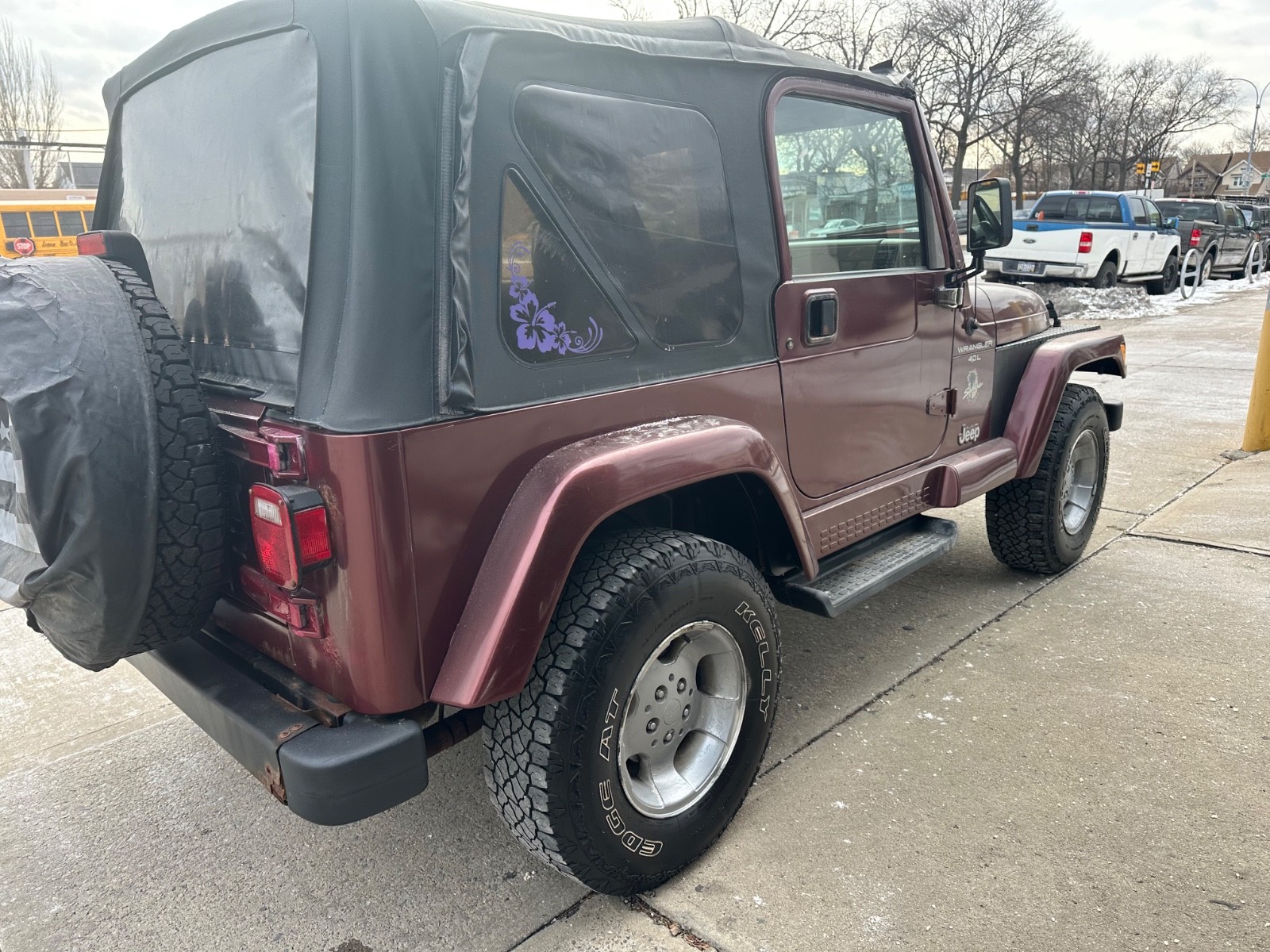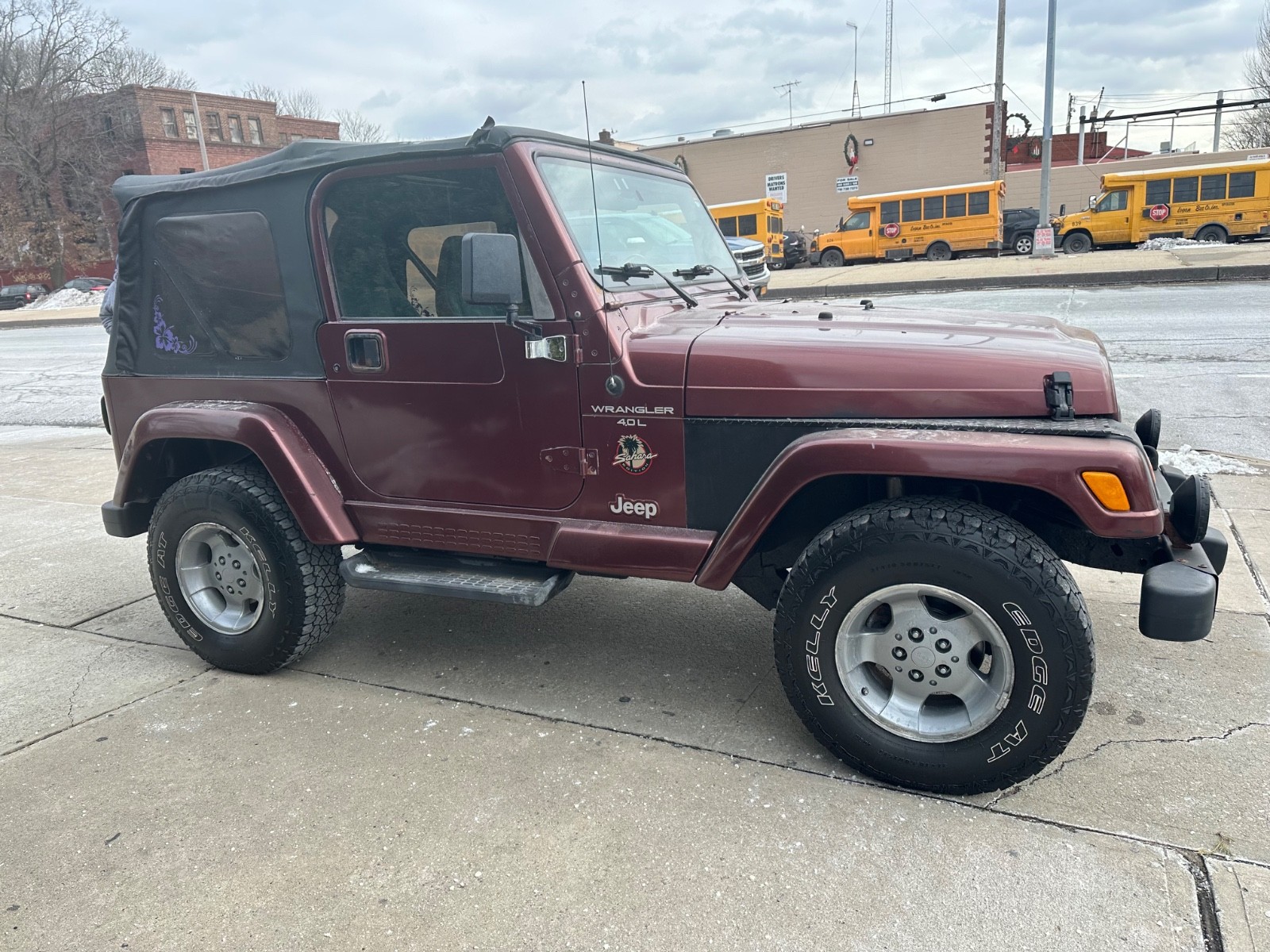for sale is a car that was recently traded in to a local new car dealership.its the sahara edition wrangler with updated trim and interior and rare dark red color! the car currently has no leaks no smoke and no check engine lights on. the car has no unusual or problematic sounds. this vehicle starts right up the engine runs smooth and quiet, the transmission shifts well, the front end tracks straight and the exhaust is quiet. the brakes and tires still have some of life on them. the electronics, windows heat and ac are all in working order. the body and paint are in excellent condition but the car will have some minor dents dings chips or scratches but far less than you would expect of a vehicle this age.may have some very minor rust chassis has no heavy rot on it and is as good as a wrangler chassis can be!the top has no rips and is in very good condition. wheels have been repainted.the hood and fender flares have some light paint fading which is nominal! the interior shows only minor wear with no major rips or stains, and the previous owner was a non smoker. please review photos as what you see is what you get and continue to read and understand all of the terms and conditions of sale.