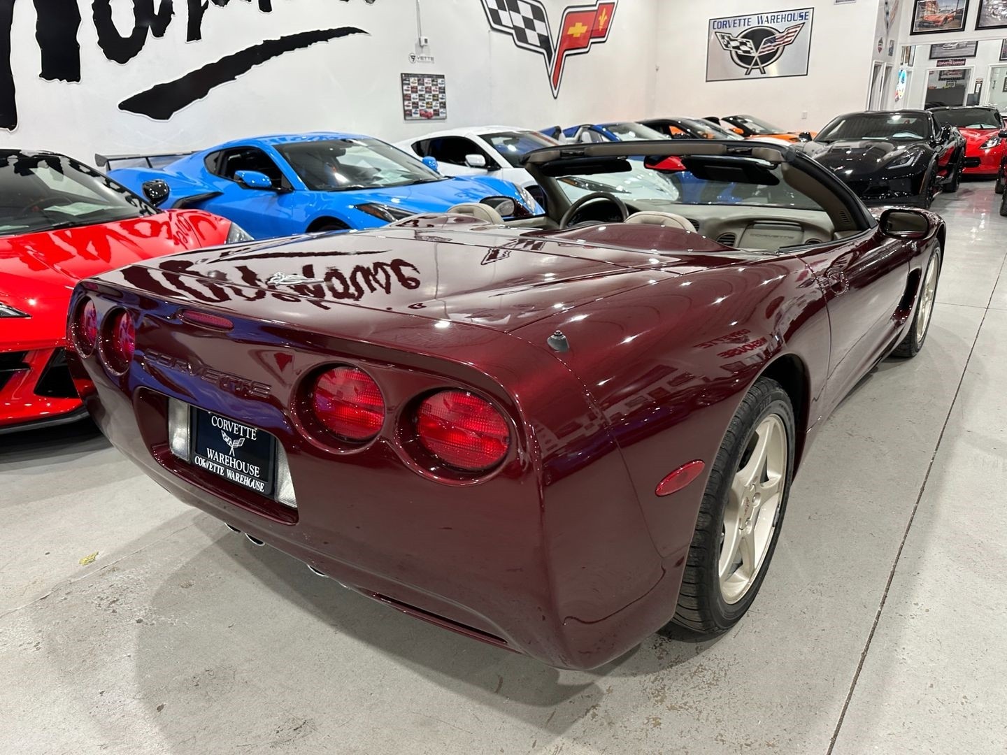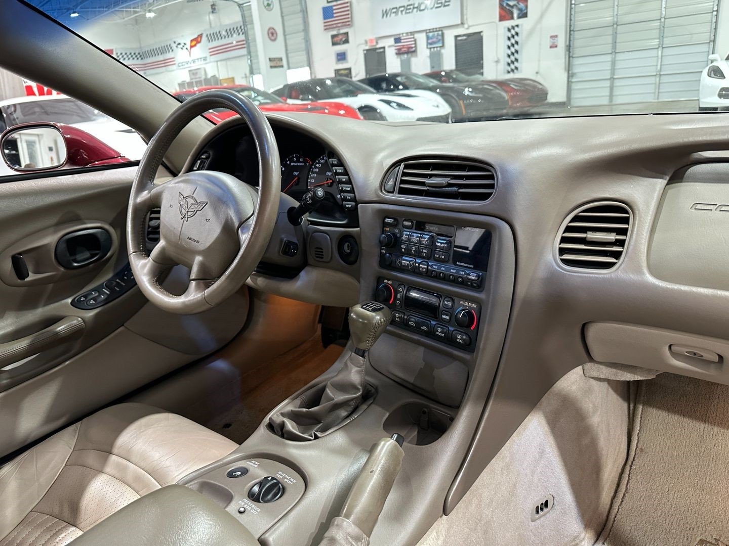 This 2003 Corvette Convertible comes equipped with the MN6 6-Speed Manual Transmission ($915), F55 Magnetic Selective Ride Control ($1,695), 1SC 50th Anniversary Edition Package ($5,000), AAB Memory Seat Package ($175), DD0 Electrochromic Mirrors ($120), UL0 Delco Stereo Cassette System, Heads-Up Display, Power Heated Leather Seats, Dual Zone Climate Control, and the factory-original 50th Anniversary Red Metallic Paint with Power Tan Soft Top. It is in excellent showroom condition and has been highly maintained.