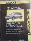 2003 Toyota Highlander Factory Service Manual Original Shop Repair Set