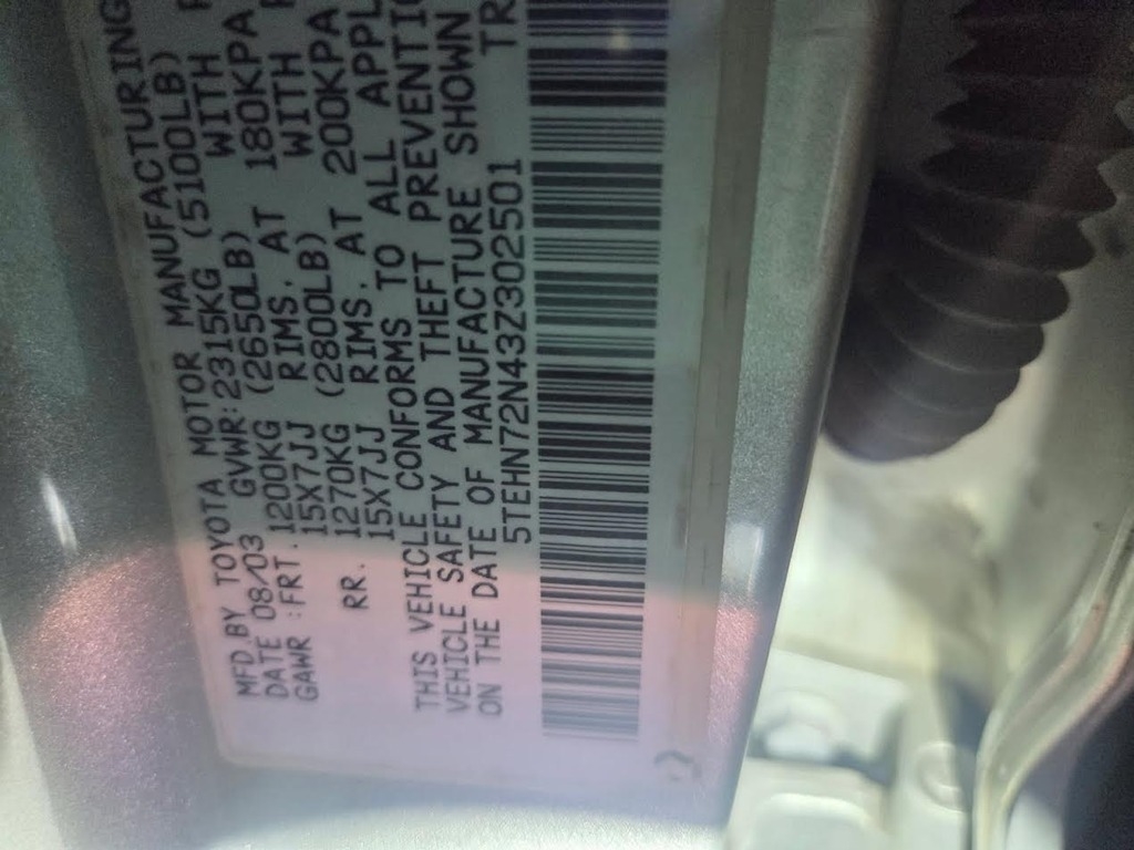 - VIN Number: 5TEHN72N43Z302501