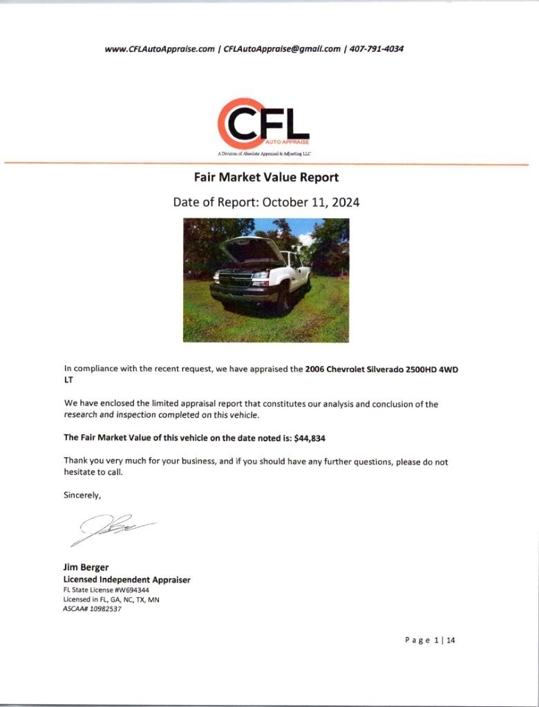 2006 pre-def LBZ Duramax with Alison transmission. four-inch exhaust, upgraded ECM to add 50 HP and fuel economy stock ECM comes with sale. 64,000 documented miles adult owned never in the mud or abused. Exterior upgrades include new Helo rims and Terra trac tires See attached invoice ($ 2,955.15) Bed is like new with spayed liner and roll up cover. Trans has extended capacity pan. Cloth interior in excellent condition. Current owner added center console and Z-71 power seats. (original stock cloth front bucket seats and console in perfect condition are available with purchase for and additional ($750.00) Upgraded stereo system, blue tooth, amp and high-end speakers professionally installed see attached invoice ($ 3,260.92) Just replaced both batteries. See attached appraisal for ($44,834.00) I have invested over $ 50,000.00. This truck is unmolested Florida truck fly in and drive it home, no leaks no trouble lights, no disappointments. Seller can pick up the buyer at the Orlando or Sanford Florida airport or help coordinate shipping arranged by the buyer. I am not a photographer the pictures do not do this vehicle justice I can text or email more pictures to serious buyers. Truck is just as clean underneath as it is outside. Third party inspections welcomed with notice for scheduling.