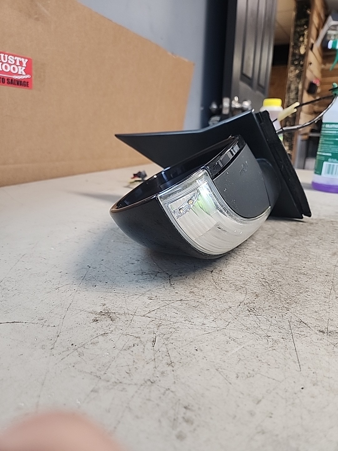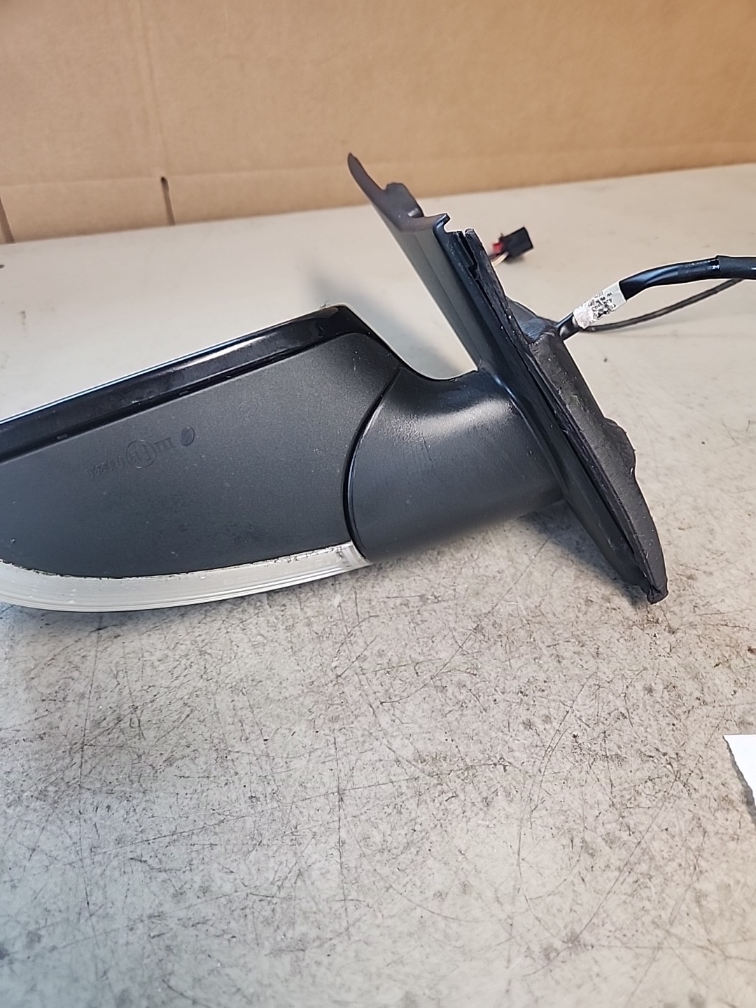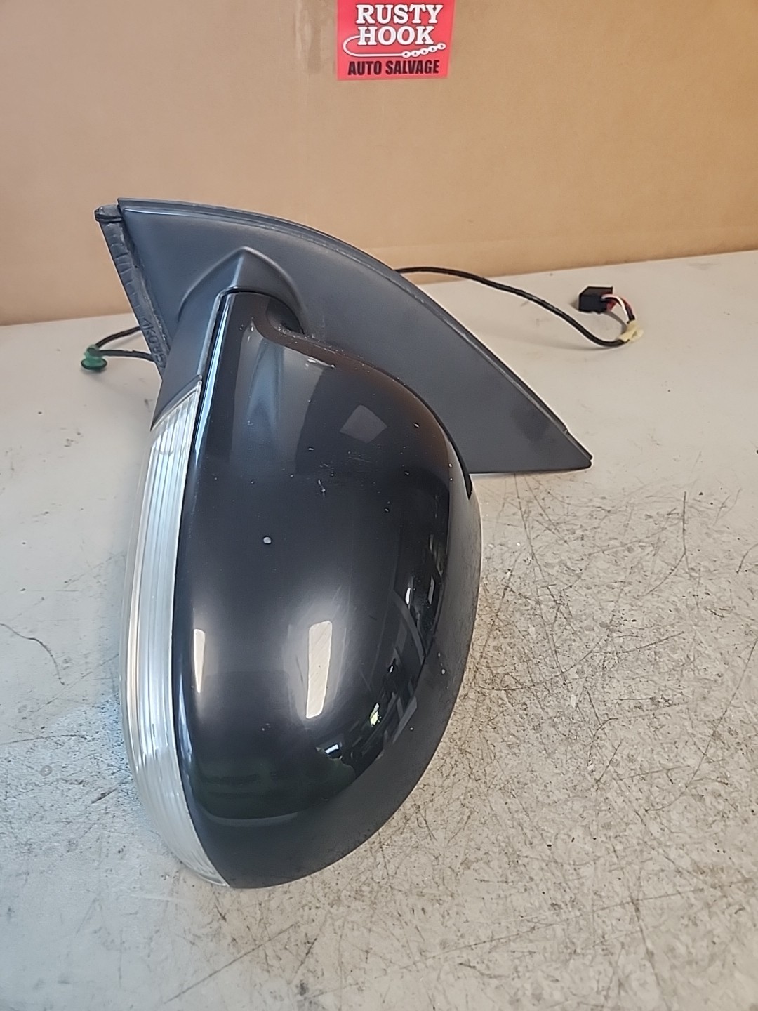 Used 2007 Volkswagen Rabbit side view door mirror, specifically designed for the left driver side. It features power heat functionality and a turn signal feature, making it a convenient and practical addition to the vehicle. The mirror is painted in a sleek black color, adding a stylish touch to the exterior of the car. This genuine Volkswagen part ensures quality and compatibility with the specified vehicle model.