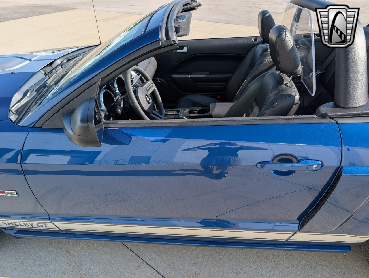 Introducing the 2008 Ford Shelby Mustang GT, a striking blend of performance and style that captures the essence of American muscle. This model boasts a captivating blue-silver exterior that beautifully complements its sleek lines and aggressive stance. The automatic convertible top allows you to enjoy open-air driving at the touch of a button, making every journey an exhilarating experience. Inside, the black interior provides a sophisticated and comfortable environment, ensuring that every drive is as enjoyable as it is thrilling.