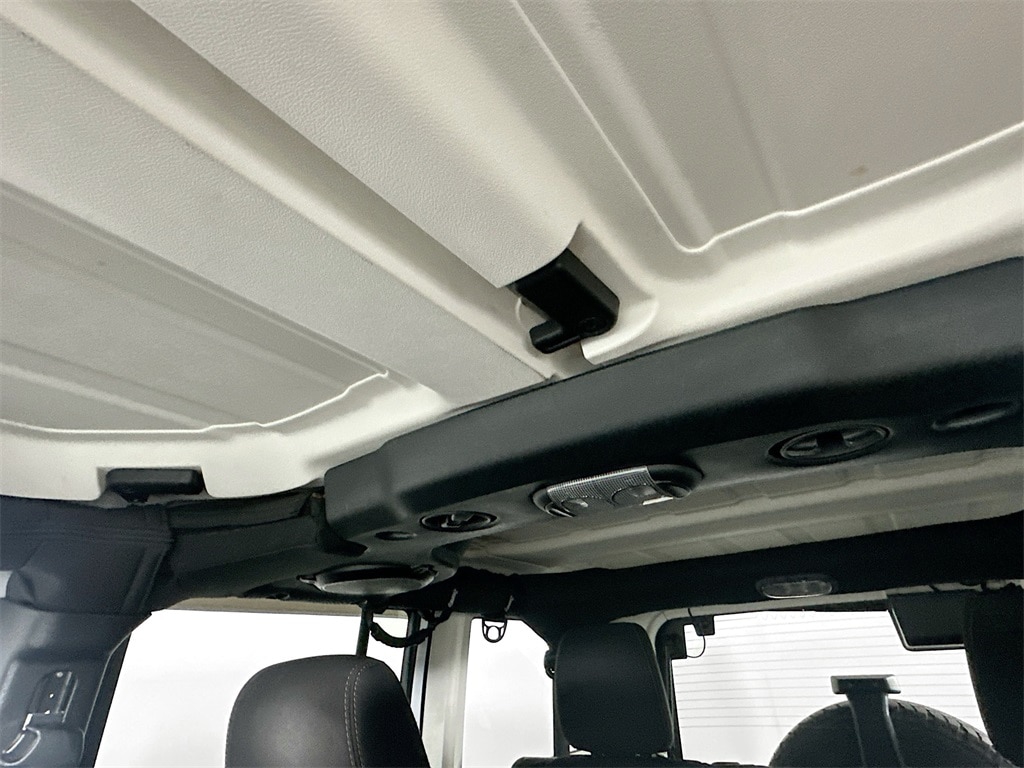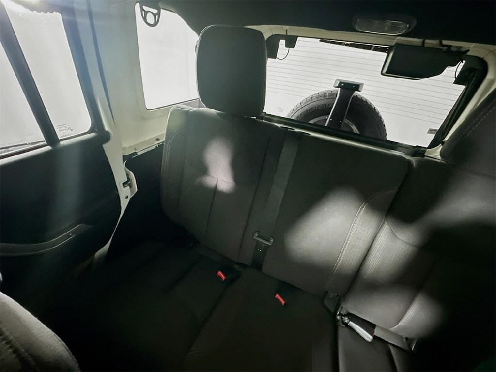 The exterior includes body color fender flares, body color grille, black and silver bumpers, halogen headlamps, fog lamps, heated power exterior mirrors, deep tint sunscreen windows, tinted windshield glass, variable intermittent wipers, and an outside rear tire carrier. Both the Sunrider soft top and the three piece Freedom hard top provide open air versatility, while the rear window wiper and defroster add convenience in changing weather.