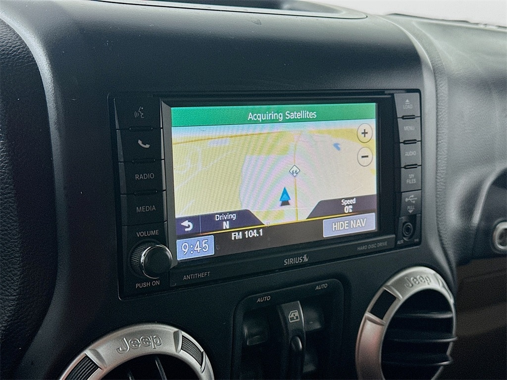Inside, the Sahara offers a well appointed cabin with low back bucket seats, reclining front seats, 60 40 split folding rear seat, cargo compartment covered storage, cargo tie downs, floor consoles, carpeting throughout, and a leather wrapped shift knob. Comfort and convenience features include power windows with one touch down for front occupants, speed control, auto dimming rearview mirror with reading lamps, premium instrumentation with tachometer, outside temperature and compass display, remote USB port, and a Uconnect 430N system with CD DVD MP3, hard drive storage, touch screen display, audio jack input, and integrated navigation. With its blend of capability, iconic design, and everyday practicality, this 2013 Wrangler Sahara remains a sought after option for drivers who want genuine 4x4 performance with refined interior features.