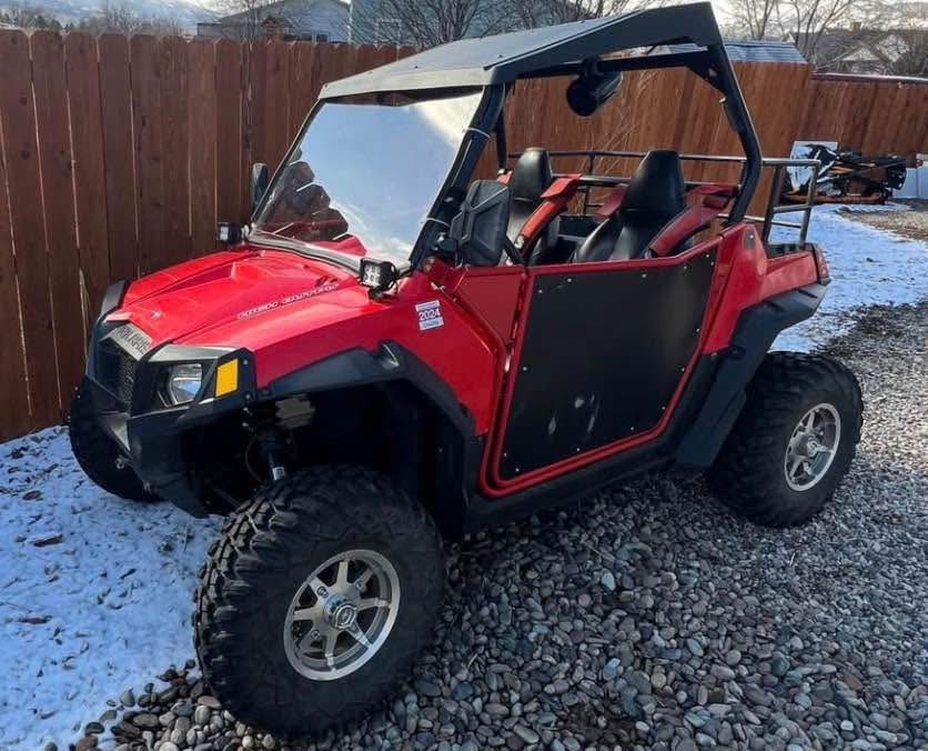 ~4,900 miles. Runs great with no issues. Full aluminum doors, UTV inc 4 point harnesses, PYLE Audio Bluetooth sound system with overhead speaker, overhead storage bag, Polaris HD 3500lbs winch with synthetic rope, quick release Glacier Snow Plow, Super ATV high clearance rear A-arms.