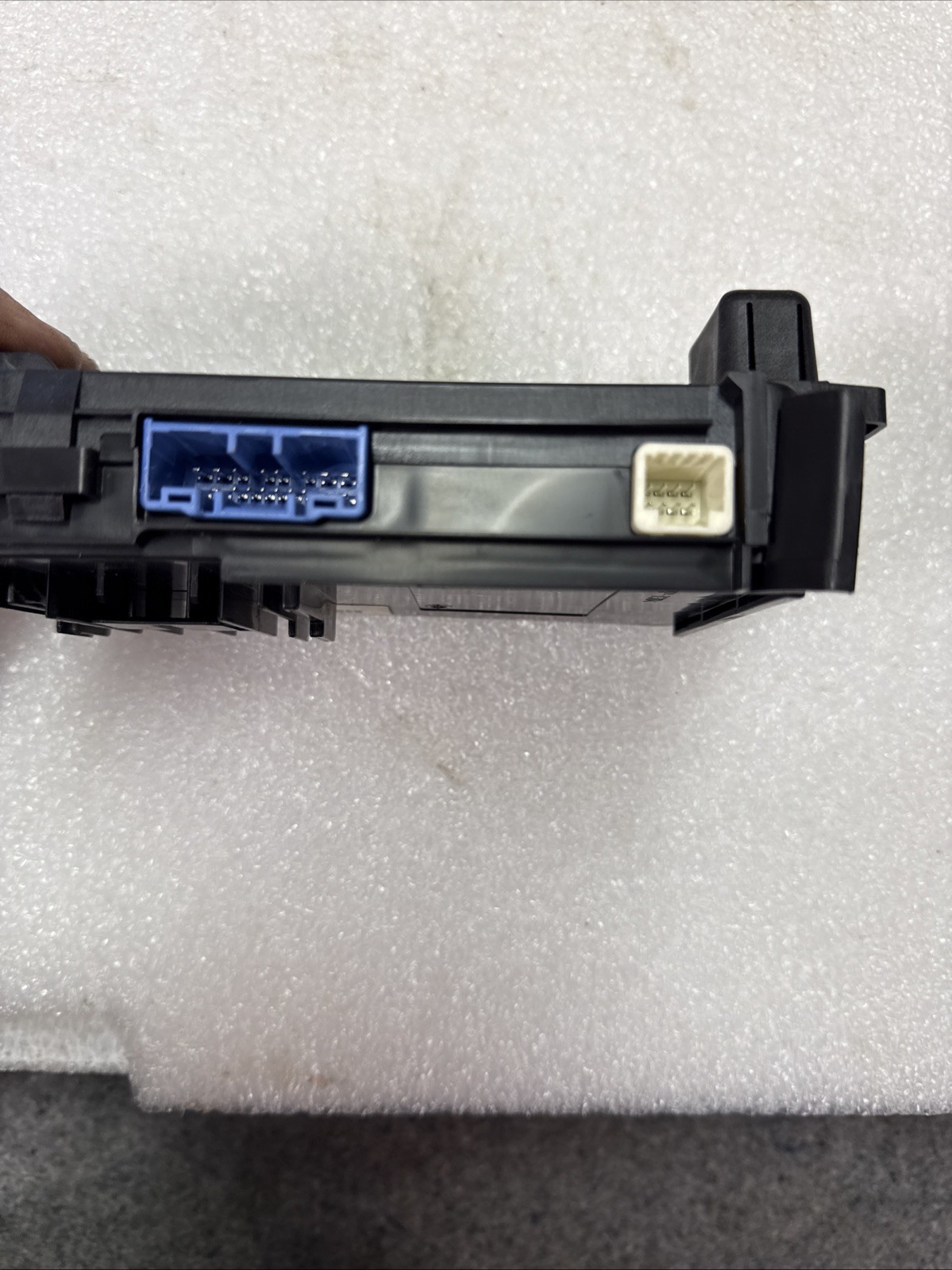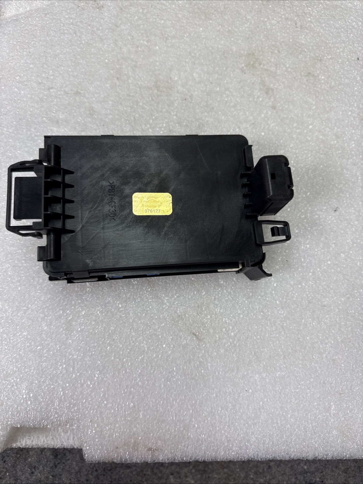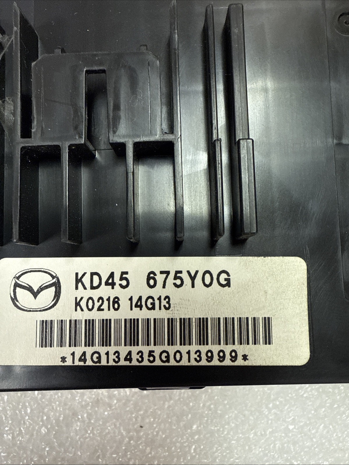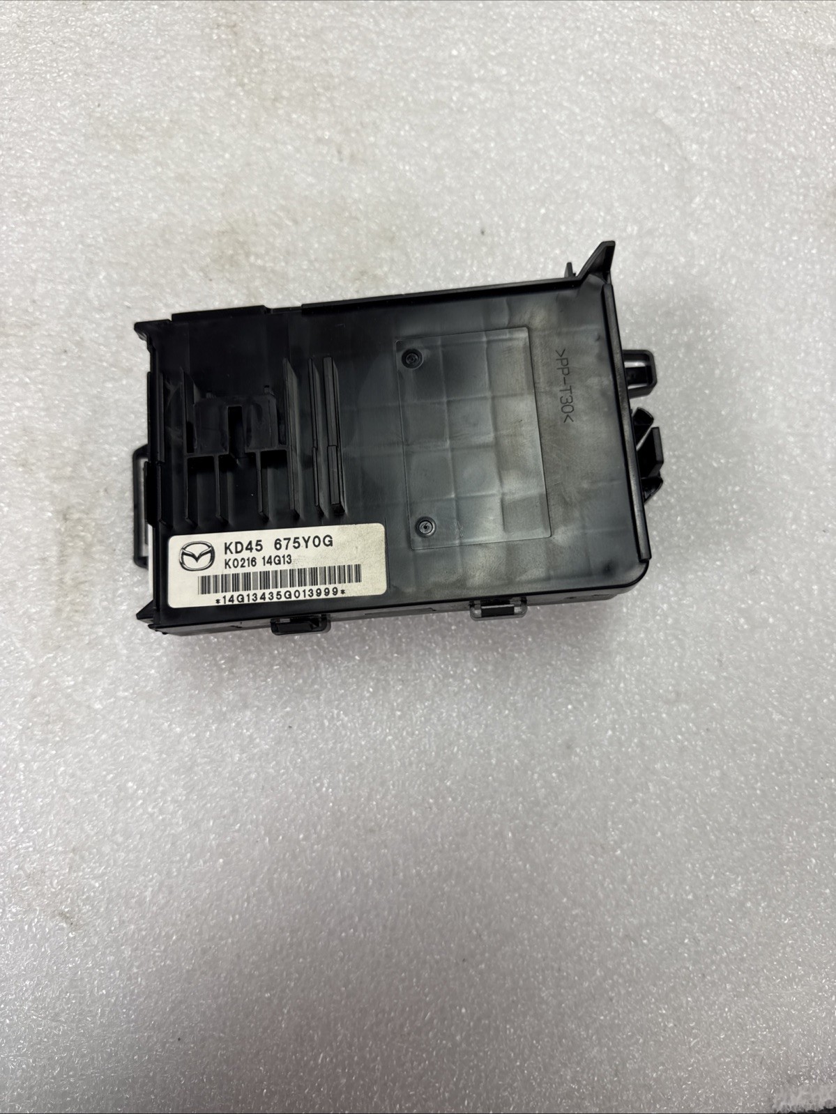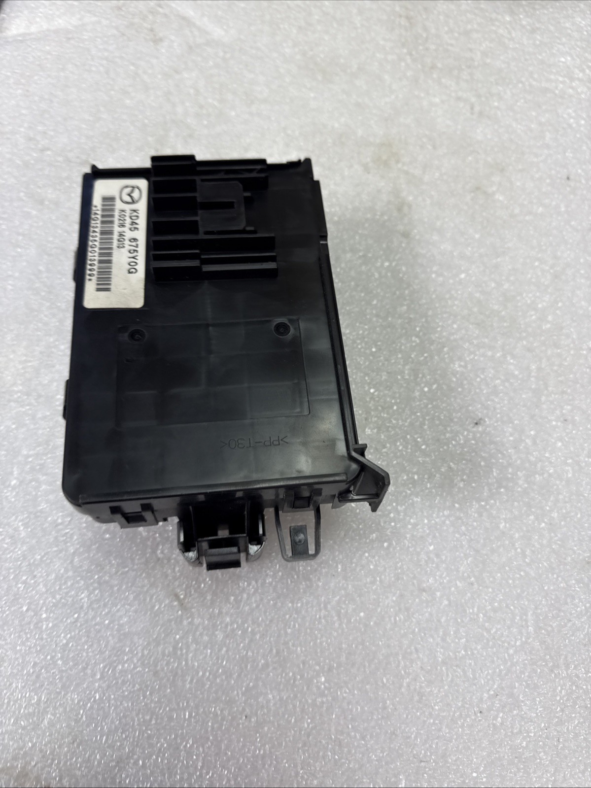 The product is a Body Control Module (BCM) for a 2014-2017 Mazda 6 or Mazda 3. It is a genuine Mazda part made of plastic with a snap-on mounting style. It includes wiring harness pigtails and has a manufacturer warranty of 1 month. The module is designed for the rear left placement on the vehicle and is manufactured in Japan. It is specifically designed for these vehicle models and has more than 100,000 miles of mileage. The terminal quantity is specified in the pictures provided.