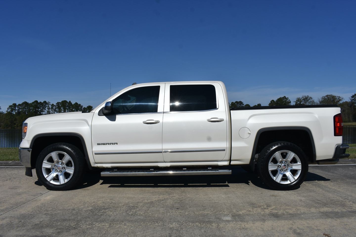 You are looking at a 2014 GMC Sierra 1500 Crew Cab SLT. It is powered with a 5.3L V8 and automatic transmission. It is equipped with factory navigation with am/fm/cd player, heated/cooled seats, power windows, power locks, power mirrors, tilt, cruise, bed cover, and receiver hitch. Also included is the owners manuals and one keyless remote.