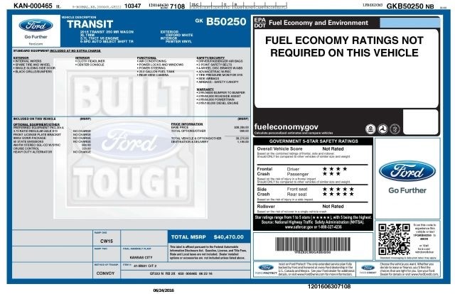 This 2016 Ford Transit 350 MR Wagon XL Has All the Standard Equipment ? 3.7L Ti-VCT V6, 6-speed SelectShift automatic, air conditioning, power windows & power locks, power steering, rearview camera, interval wipers, Tire Pressure Monitoring System, AdvanceTrac? with RSC?, front/side/curtain airbags with Safety Canopy?? and much more.