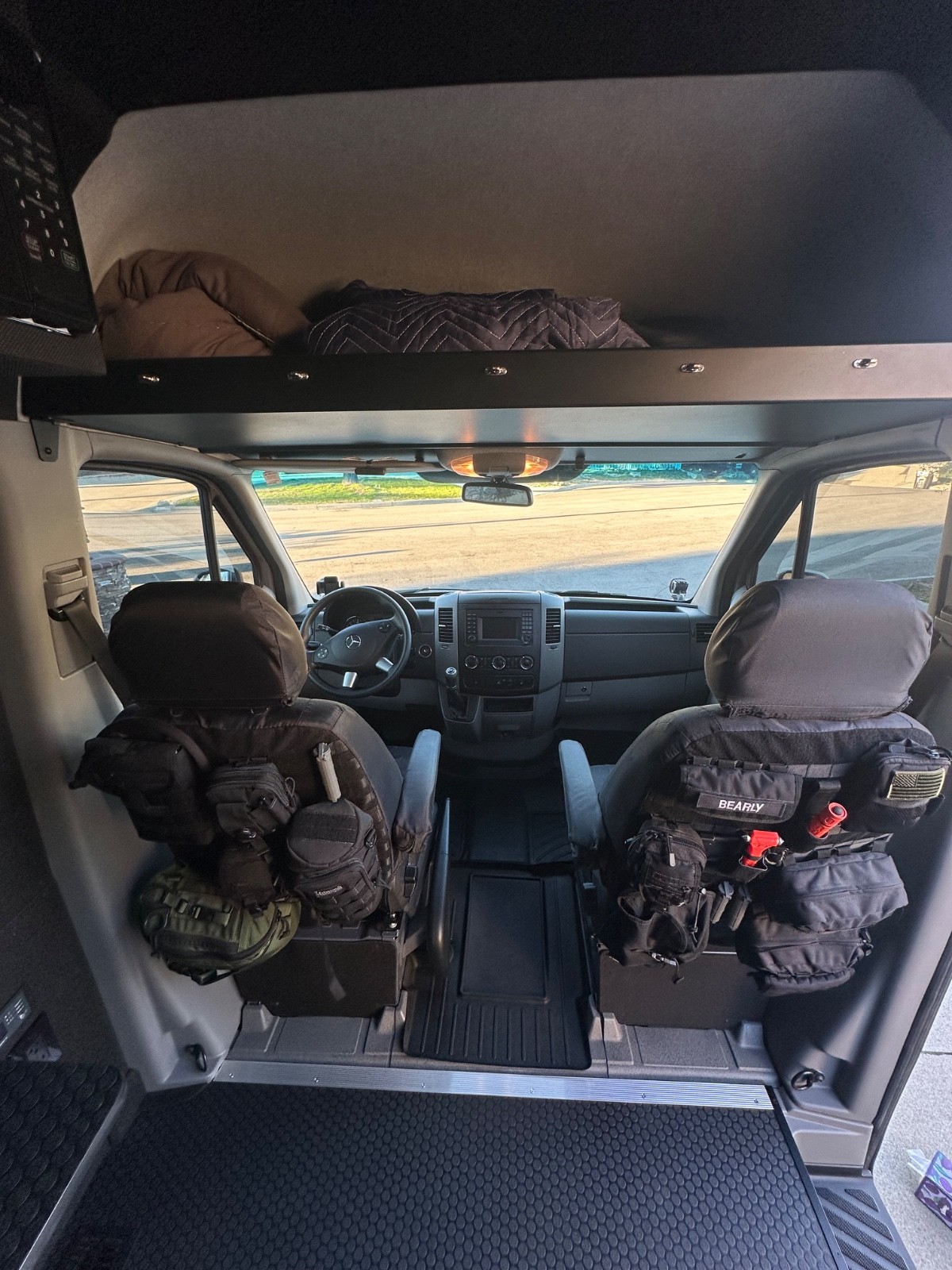 Driver-side storage cabinet w/ microwave