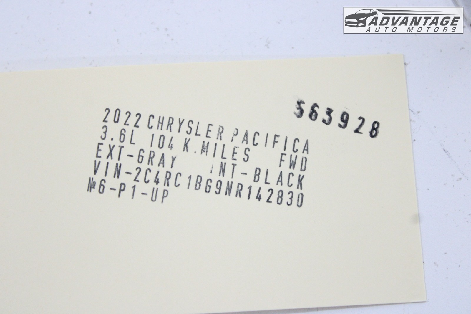DONOR VEHICLE: 2022 CHRYSLER PACIFICA (RU) TOURING L