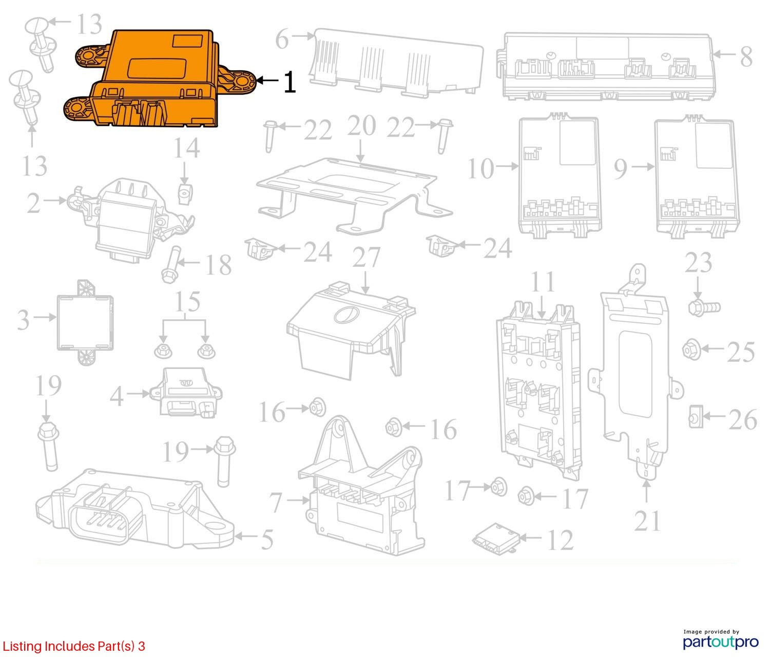 Jeep Wrangler 2018-2018 Network Gateway; (VIN X, 6th digit, JL body), (under dash, driver's side)