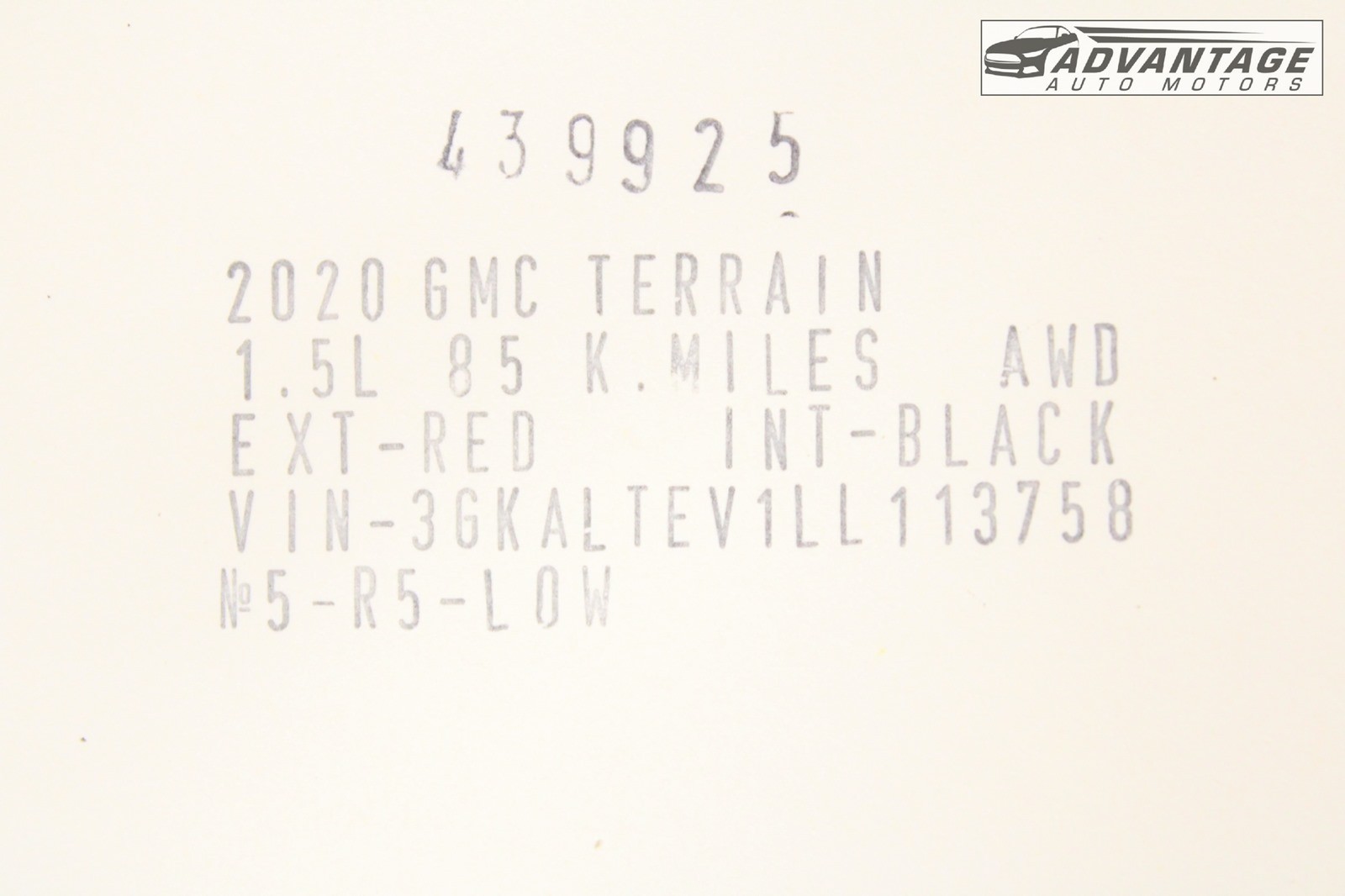 DONOR VEHICLE: 2020 GMC TERRAIN SLE