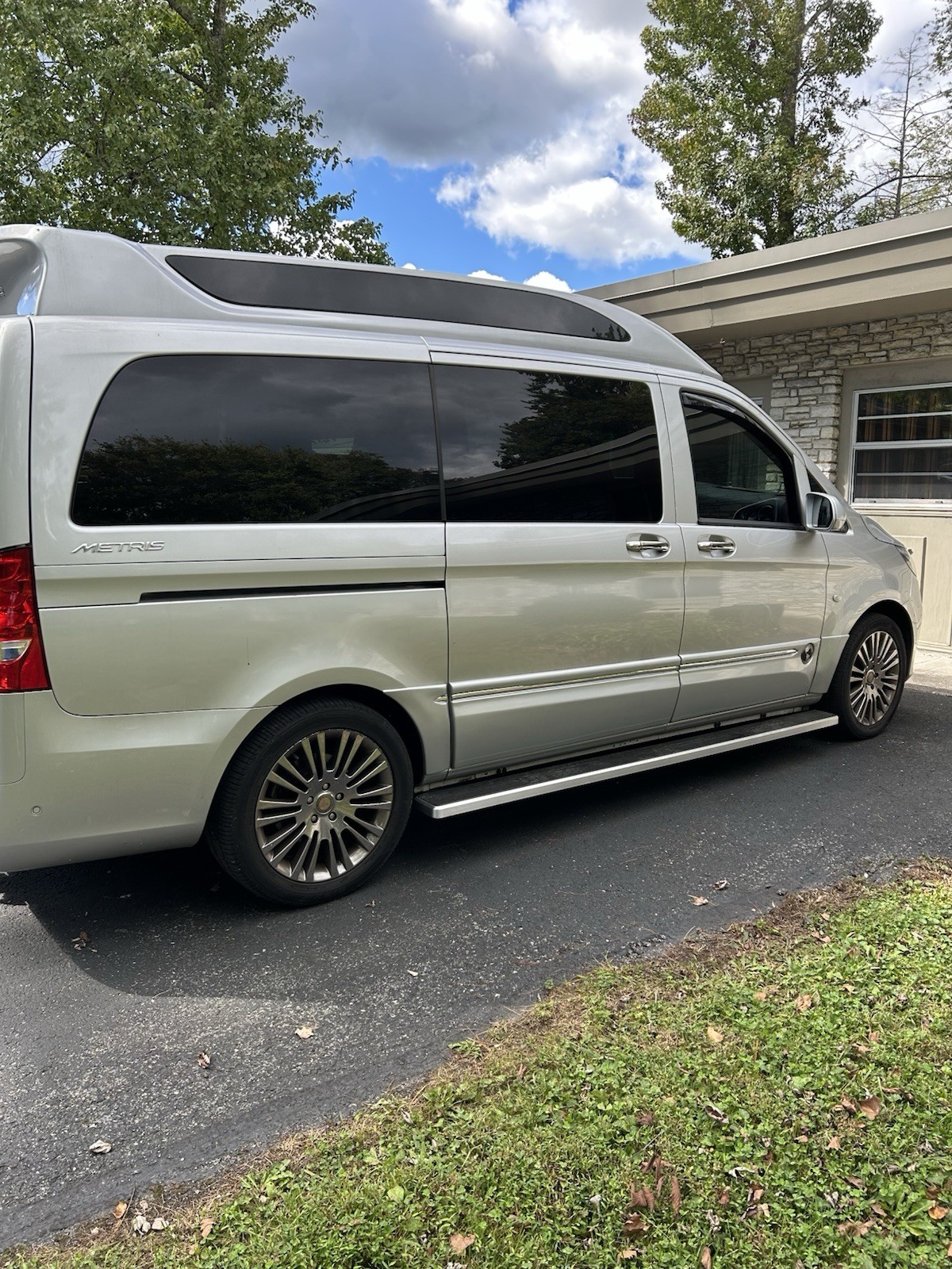 The Mercedes-Benz Metris Explorer Conversion raised top van! This is s a stylish and versatile conversion van with a sleek silver exterior and a black interior. With seating for up to 7 passengers. It is equipped with a gas 4 cyl, turbo engine and automatic transmission, this vehicle offers comfort and convenience for any road trip. Featuring 5 doors for easy access, this Metris model from Mercedes-Benz is a reliable choice for those in need of a spacious and efficient passenger vehicle. It's great as a daily driver or road travel beast! It features a raise top with sunroof, 4 Caption Chairs, rear bench seat that folds flat. TV, entertainment center with DVD. A center console cooler and much more!