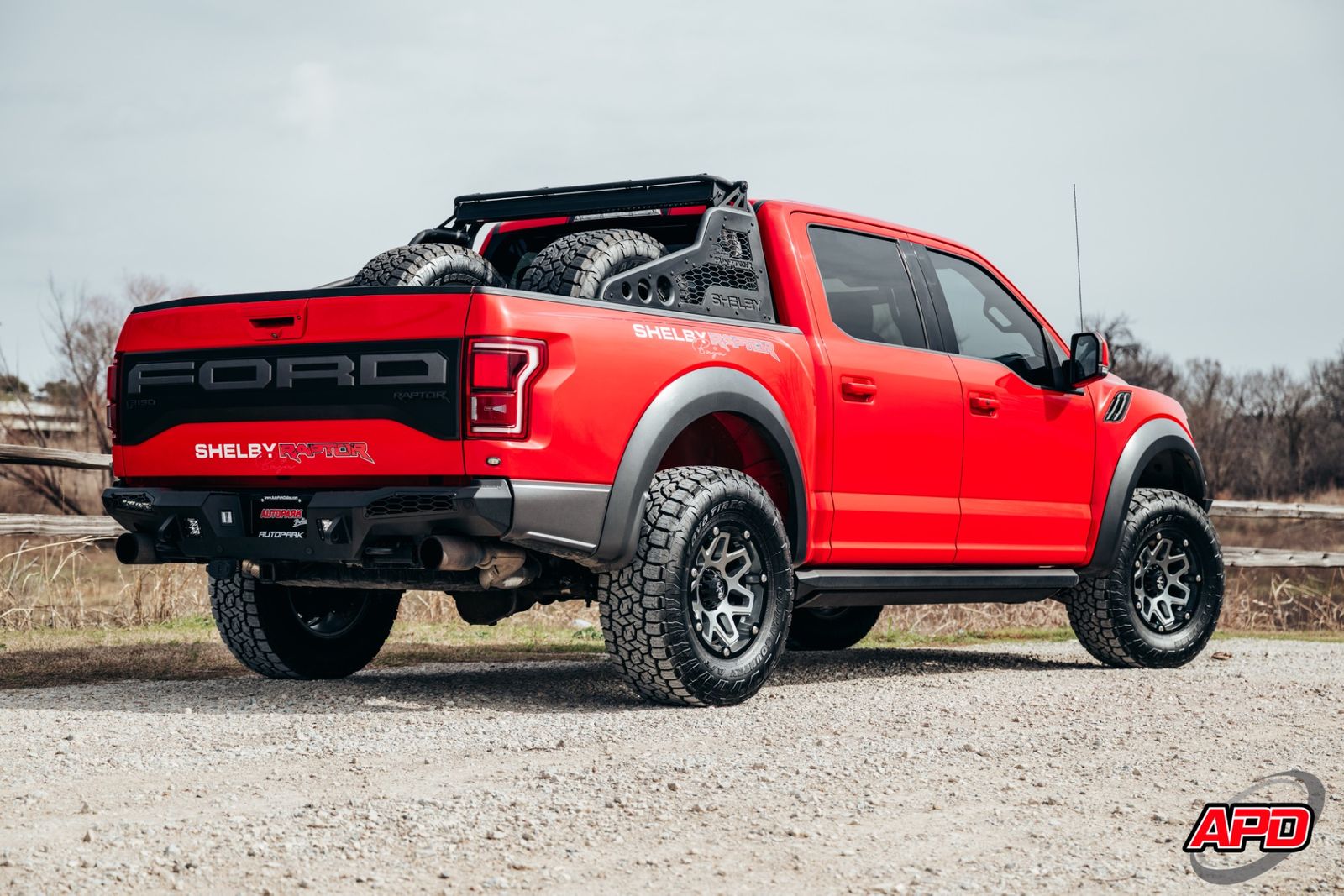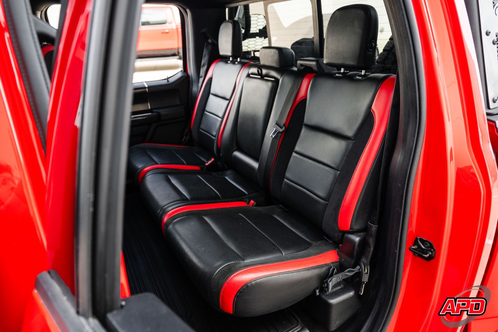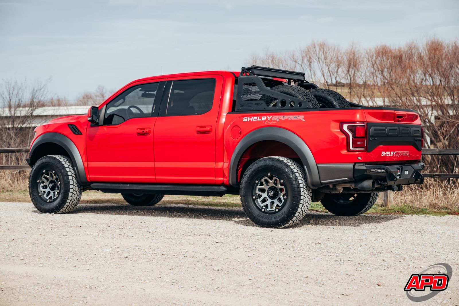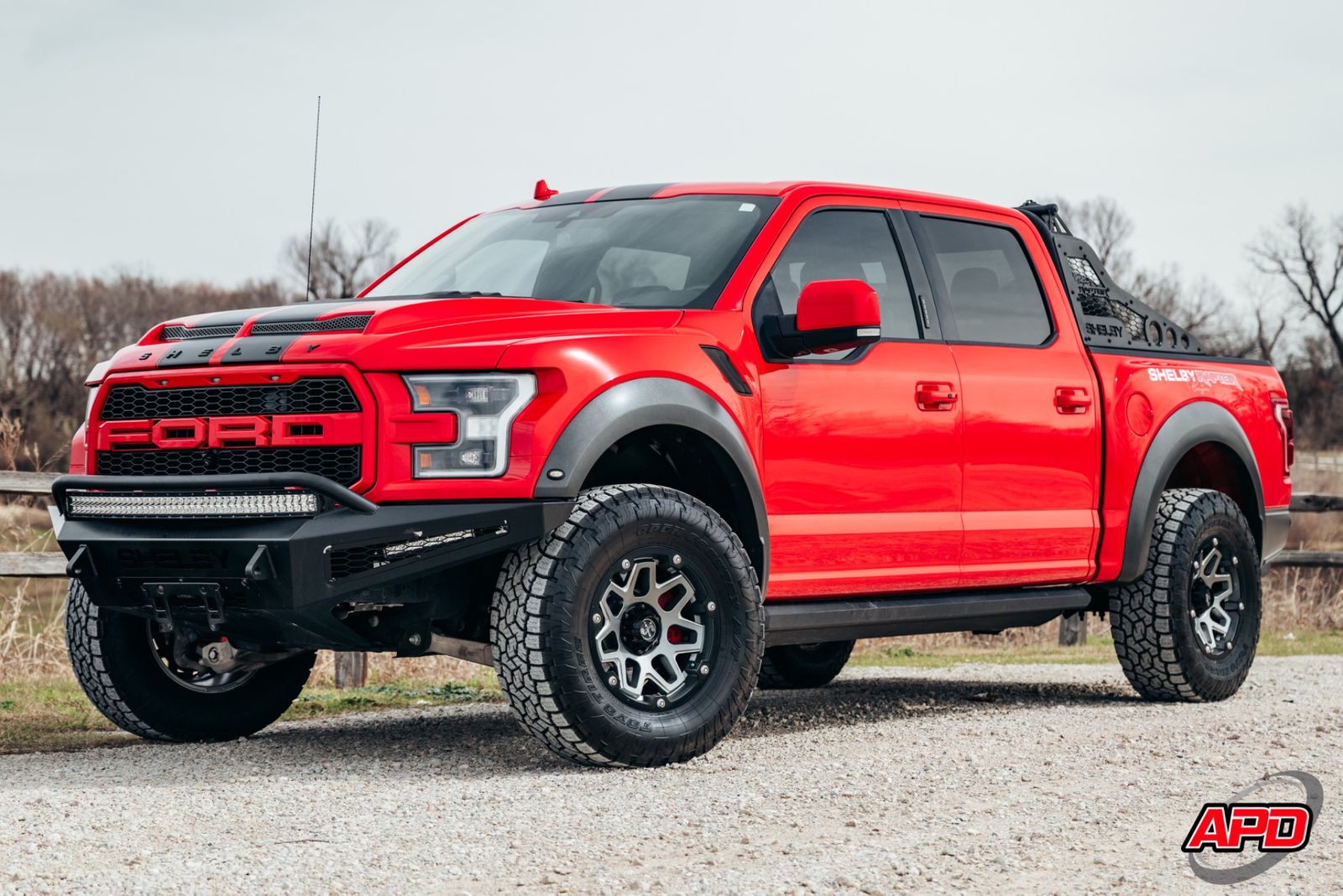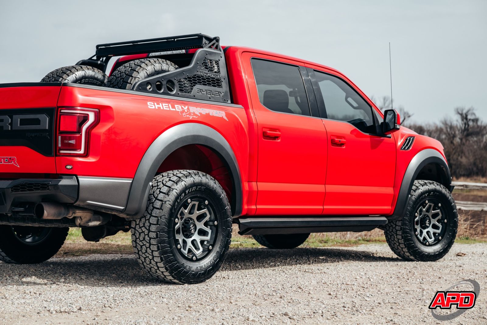 Race Red on a Shelby Baja is loud, aggressive, and impossible to miss. This thing turns heads everywhere it goes. Add the Shelby ram-air hood, rally stripes, steel bumpers, bed-mounted spare rack, and carbon interior accents — and you’ve got one of the most epic Raptors ever built.