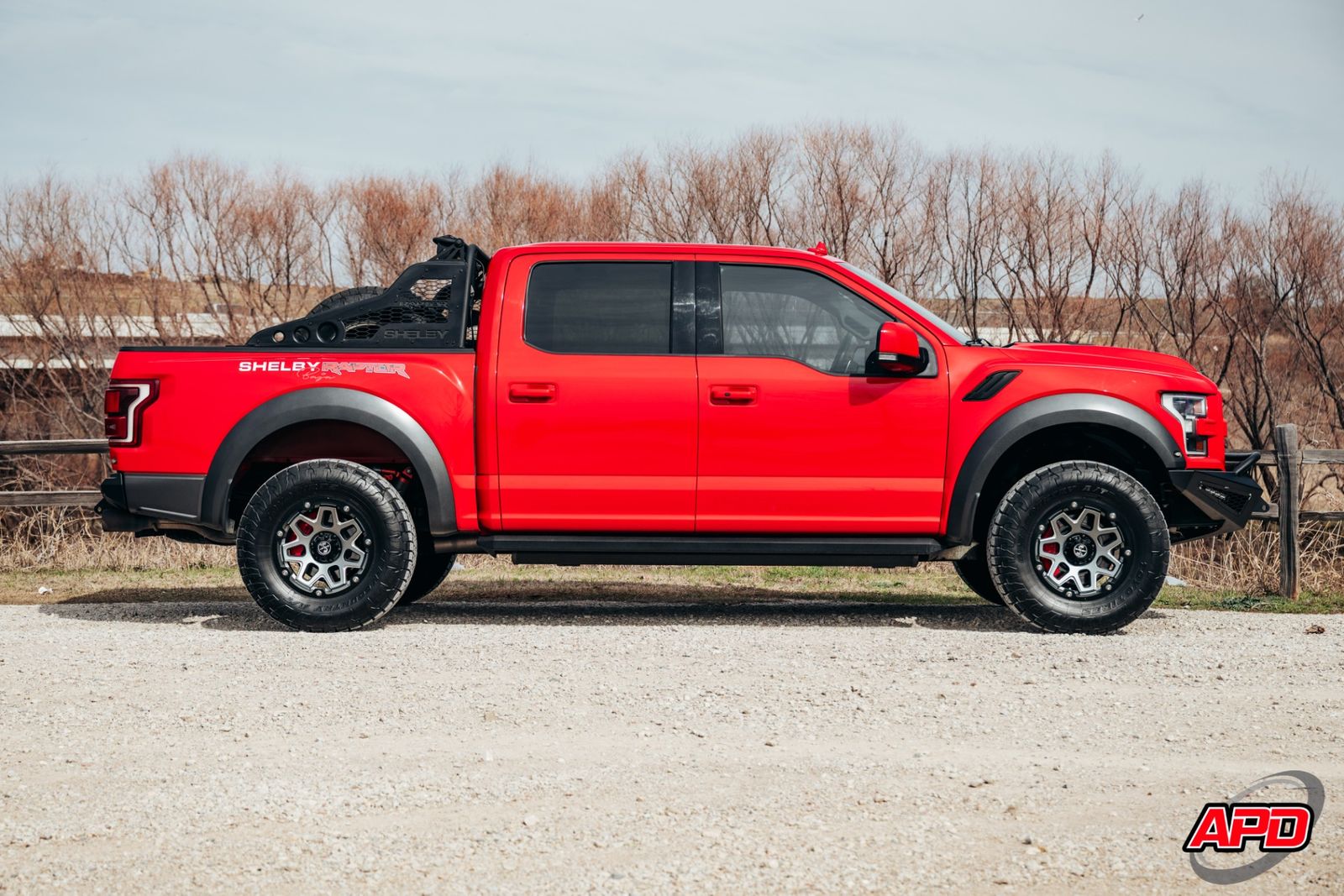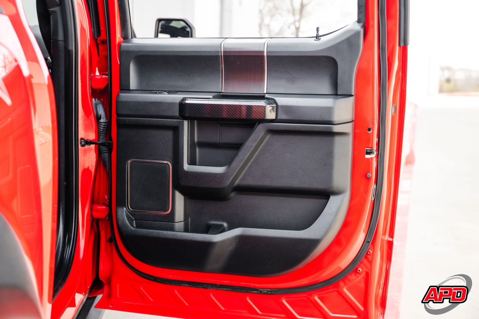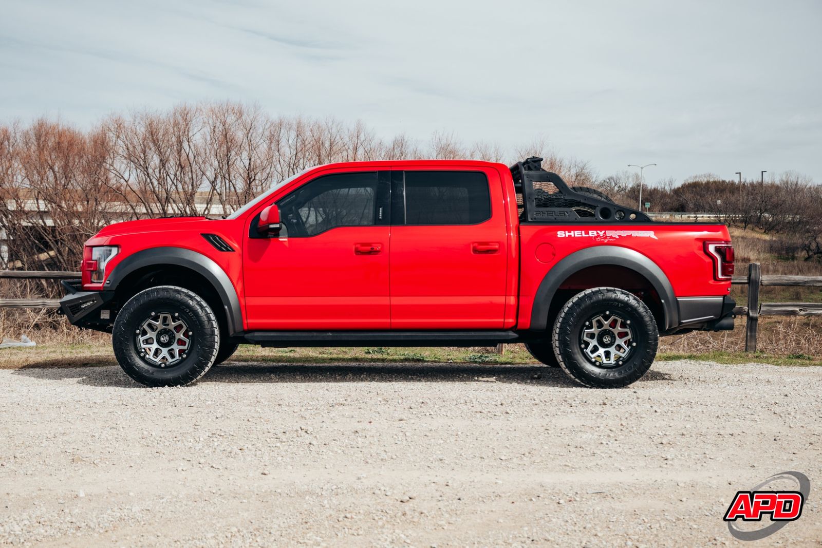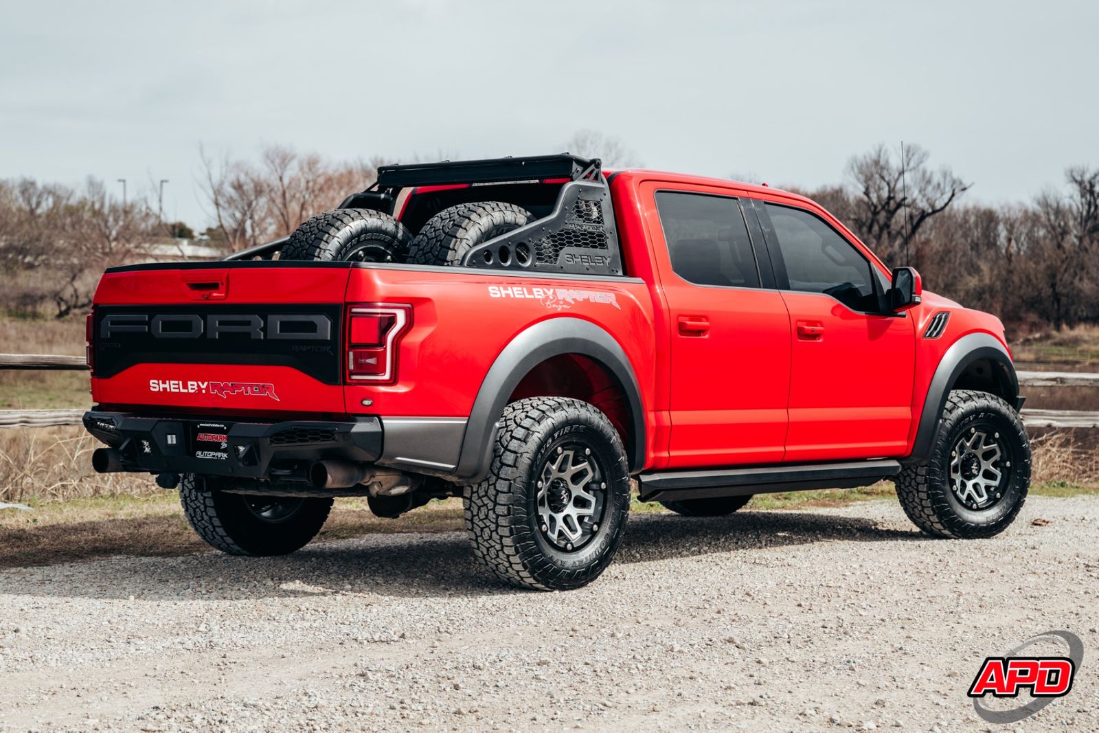 Race Red on a Shelby Baja is loud, aggressive, and impossible to miss. This thing turns heads everywhere it goes. Add the Shelby ram-air hood, rally stripes, steel bumpers, bed-mounted spare rack, and carbon interior accents — and you’ve got one of the most epic Raptors ever built.
