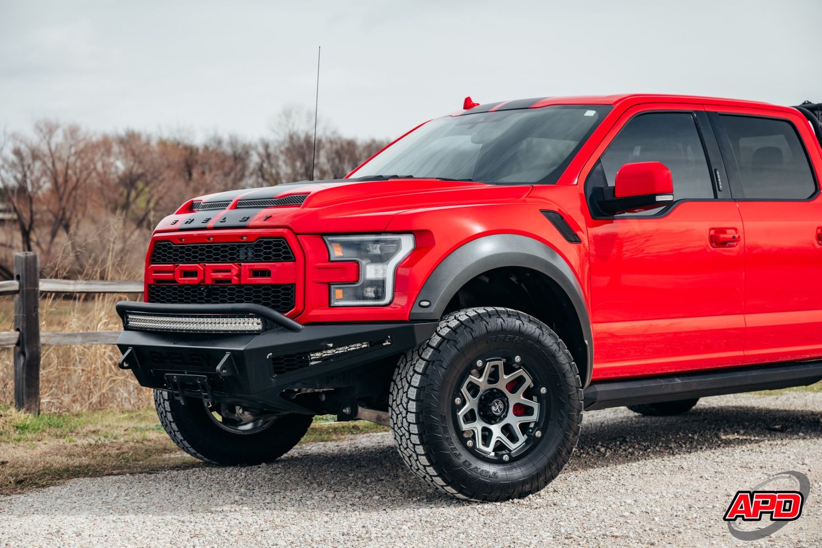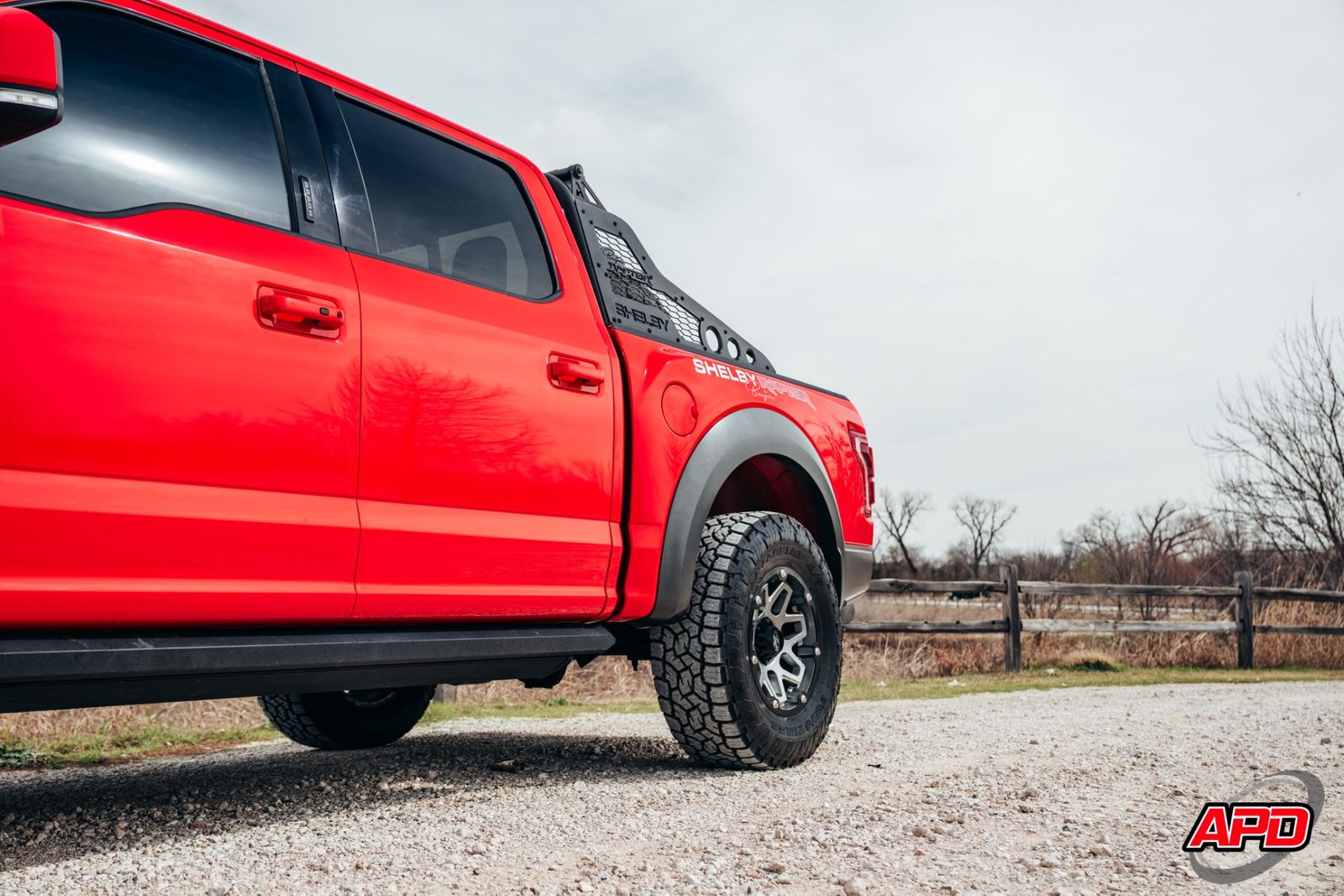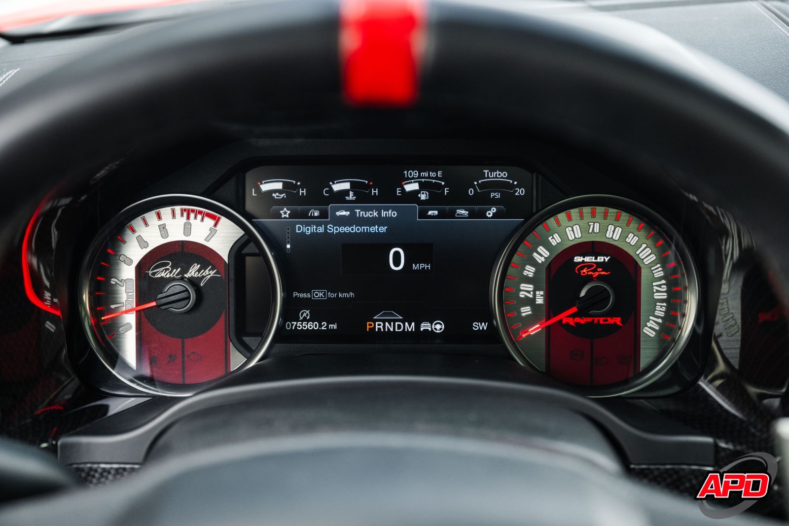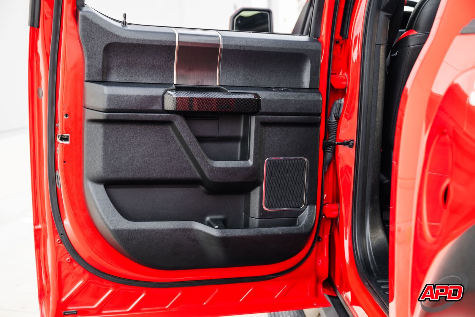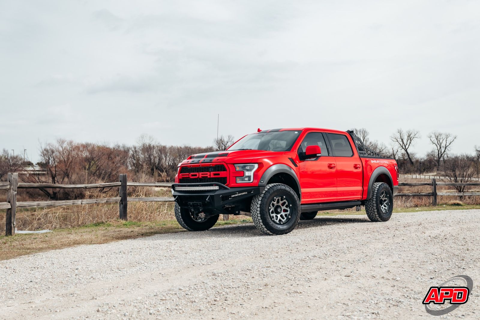Race Red on a Shelby Baja is loud, aggressive, and impossible to miss. This thing turns heads everywhere it goes. Add the Shelby ram-air hood, rally stripes, steel bumpers, bed-mounted spare rack, and carbon interior accents — and you’ve got one of the most epic Raptors ever built.