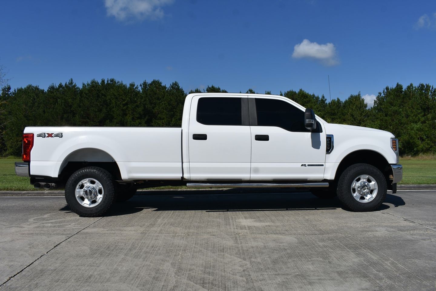 You are looking at a 2019 Ford F-250 Crew Cab XL 4X4 . It is powered with a 6.7L Powerstroke Diesel V-8 and automatic transmission. It is equipped with tilt, cruise, power windows, power locks, spray in bed liner, and receiver hitch. Also included are the owner's manuals and one keyless remote.