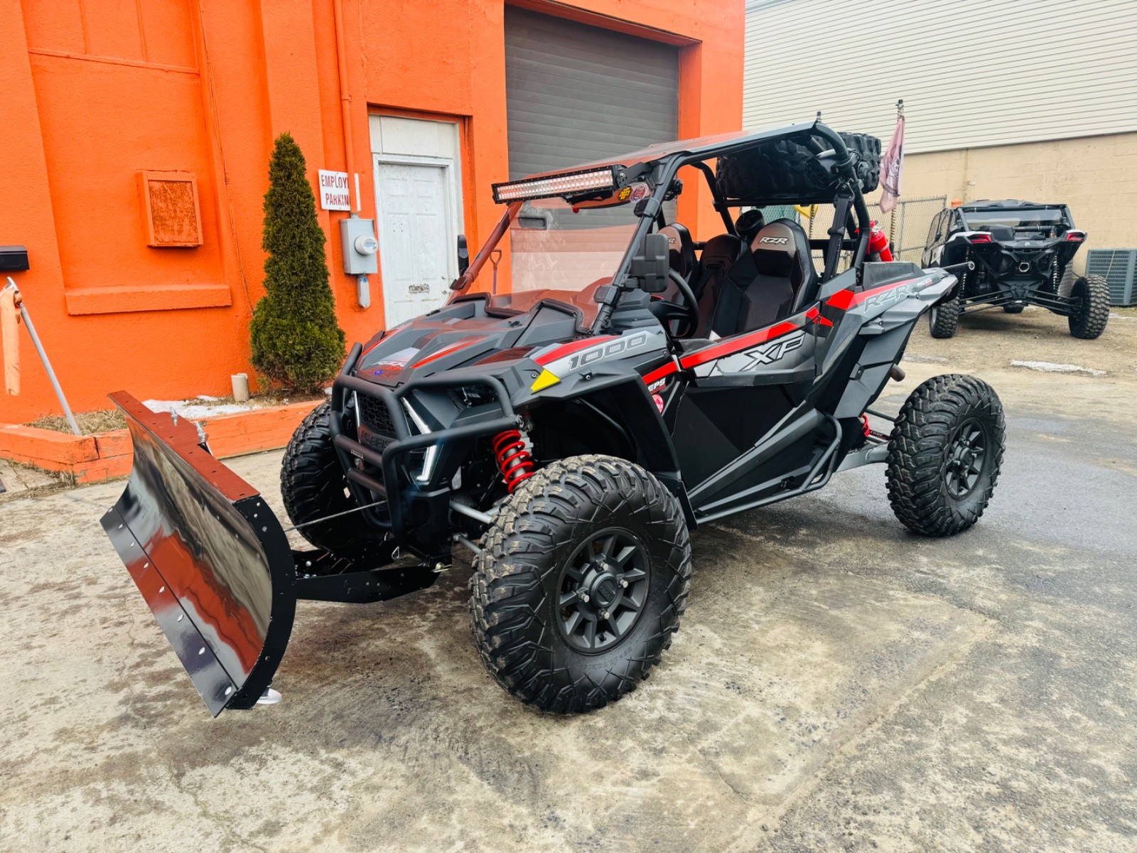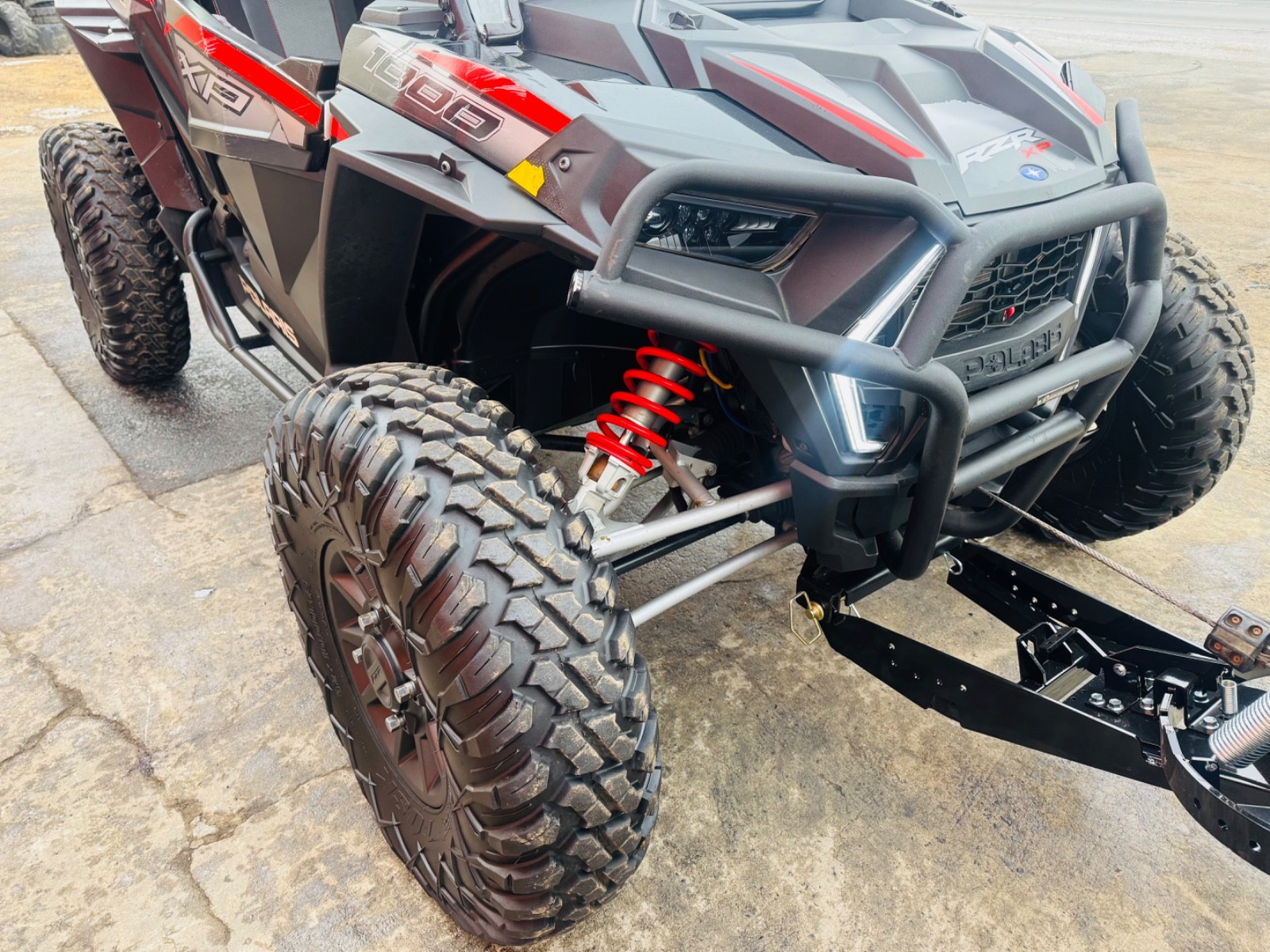 Comes with a winch, front and rear bumper, rock sliders, front windshield, metal roof, mirrors, light bar, Bluetooth radio and a spare tire The 2019 Polaris RZR XP 1000 is a powerful sport UTV with a 999cc ProStar engine producing 110 HP, featuring true On-Demand AWD/2WD, electronic fuel injection, and an automatic PVT transmission, plus 21 inches of front/rear suspension travel with Walker Evans shocks, hydraulic disc brakes, and standard EPS