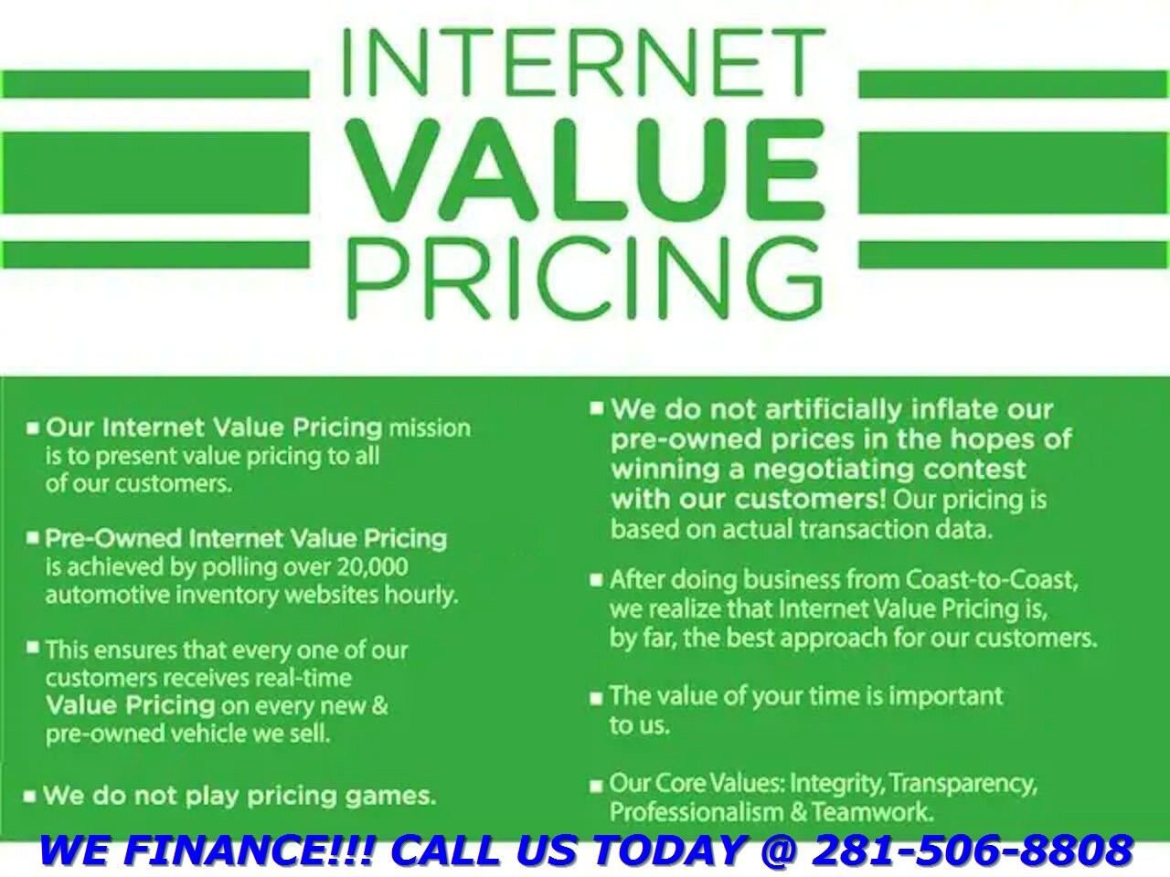 FINANCING IS AVAILABLE WITH APPROVED CREDIT (WAC) ONLY ! ALL BUY IT NOW PRICES LISTED ARE FOR CASH BUYERS OR IF CUSTOMERS ARRANGE THEIR OWN FINANCING !!!