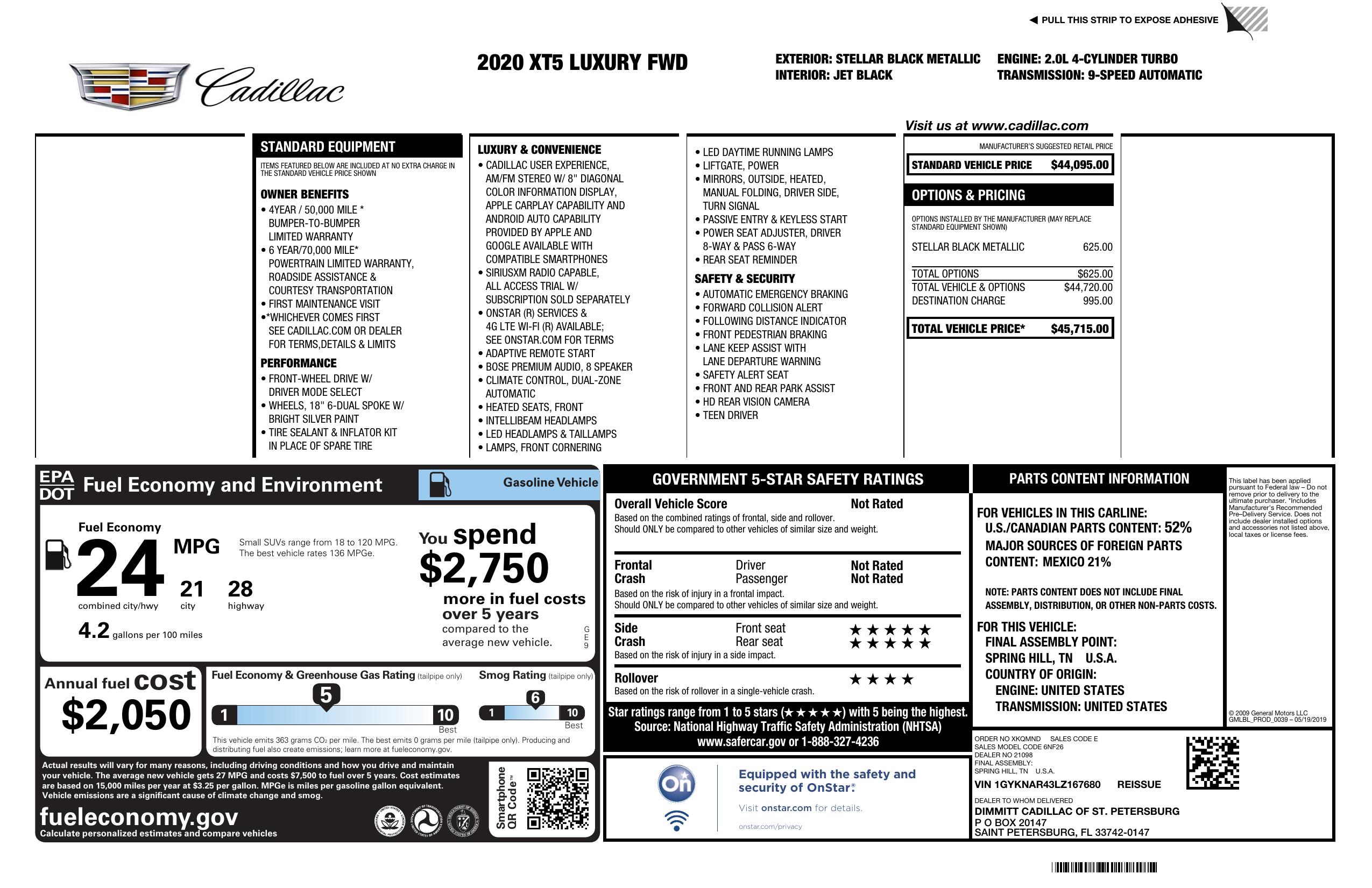 Absolutely stunning black on black 2020 Cadillac XT5 Luxury Trim. Just look at this beautiful black on black color combo! This car is in excellent condition inside and out, just serviced, no issues whatsoever. I've personally drive this car several hundred miles to make sure are no issues. It's the best price in the country for a comparable XT5 - so don't miss it! We don't charge any extra fees and 2000 mile warranty is also included.