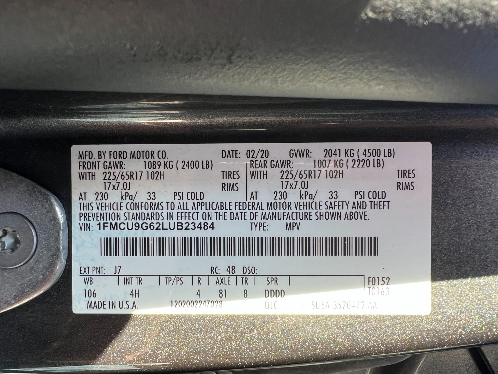 2020 FORD ESCAPE AWD