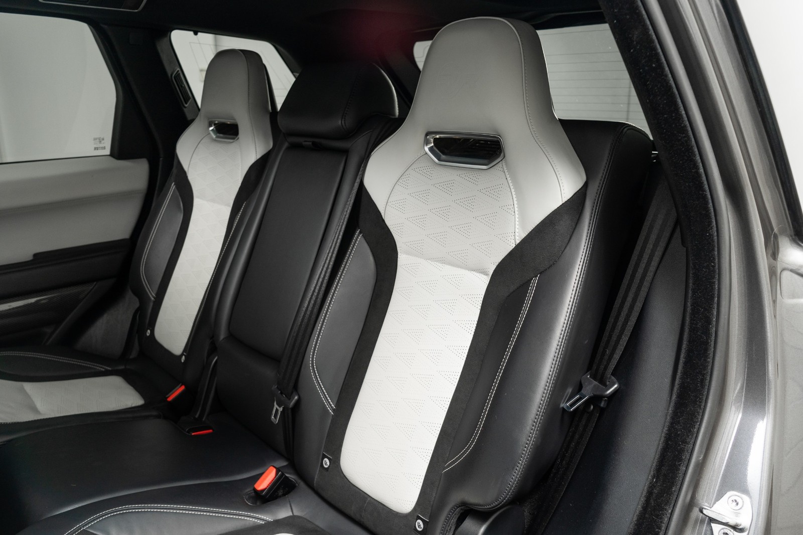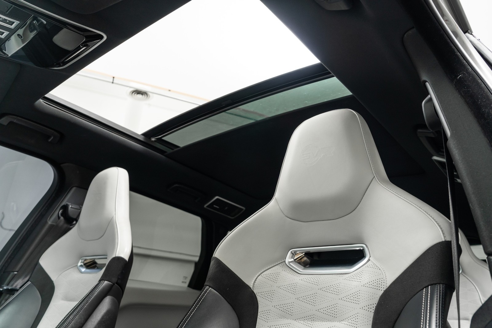 2020 Land Rover Range Rover Sport SVR in Scafell Grey Metallic over Ebony and Cirrus leather interior with only 76,529 miles. This Range Rover is loaded with: 5.0 Liter supercharged V8 with 575 horsepower, 8 speed automatic transmission, 22 inch gloss black style 5083 wheels, red brake calipers, carbon fiber exterior pack (gloss carbon fiber trim for lower bumper intake surrounds, hood vent inserts, fender vents, grille surround, mirror caps, tailgate finisher, and exposed carbon fiber hood), black contrast roof, panoramic sunroof, premium palette paint color, SVR performance seats with perforated leather, heated and cooled front seats with heated rear seats, heated steering wheel, ebony Morzine headliner, extended carbon fiber interior trim finishers, Meridian surround sound, heated windshield, heads up display, navigation, surround view cameras, rubber floor mats, rubber cargo mat and much more!