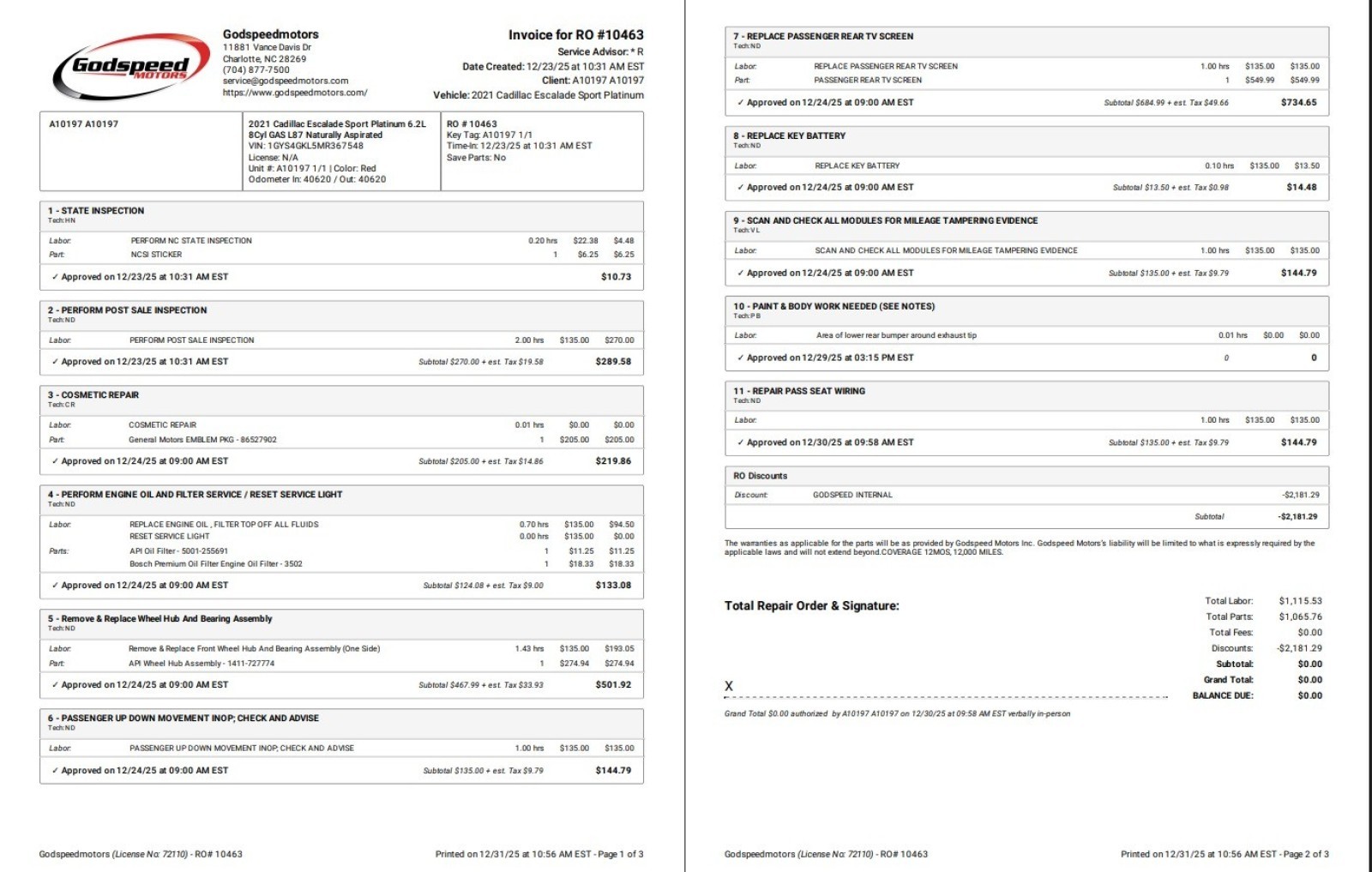 2021 Cadillac Escalade Sport Platinum $115K MSRP