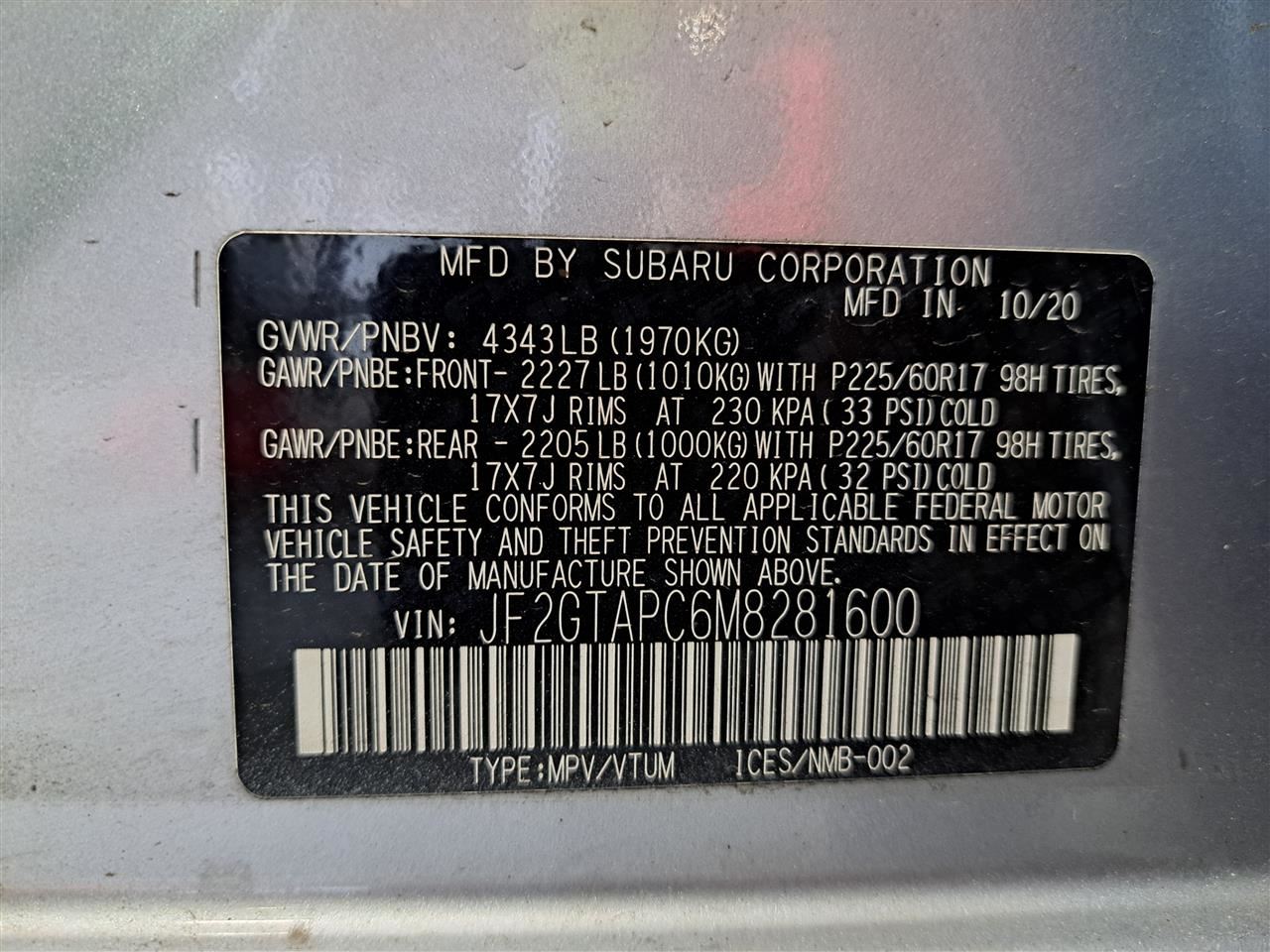 This for a USED OEM Interior Rear View/Rearview Mirror Assembly pulled from a 2021 CROSSTREK with 54000 actual miles on it.